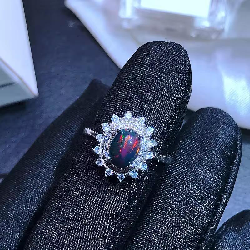 แหวนโอปอลสีดำ R001สีเงิน925ชั้นสูงเครื่องประดับขายส่งจากประเทศไทย