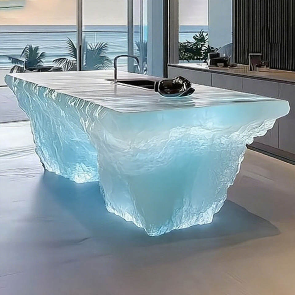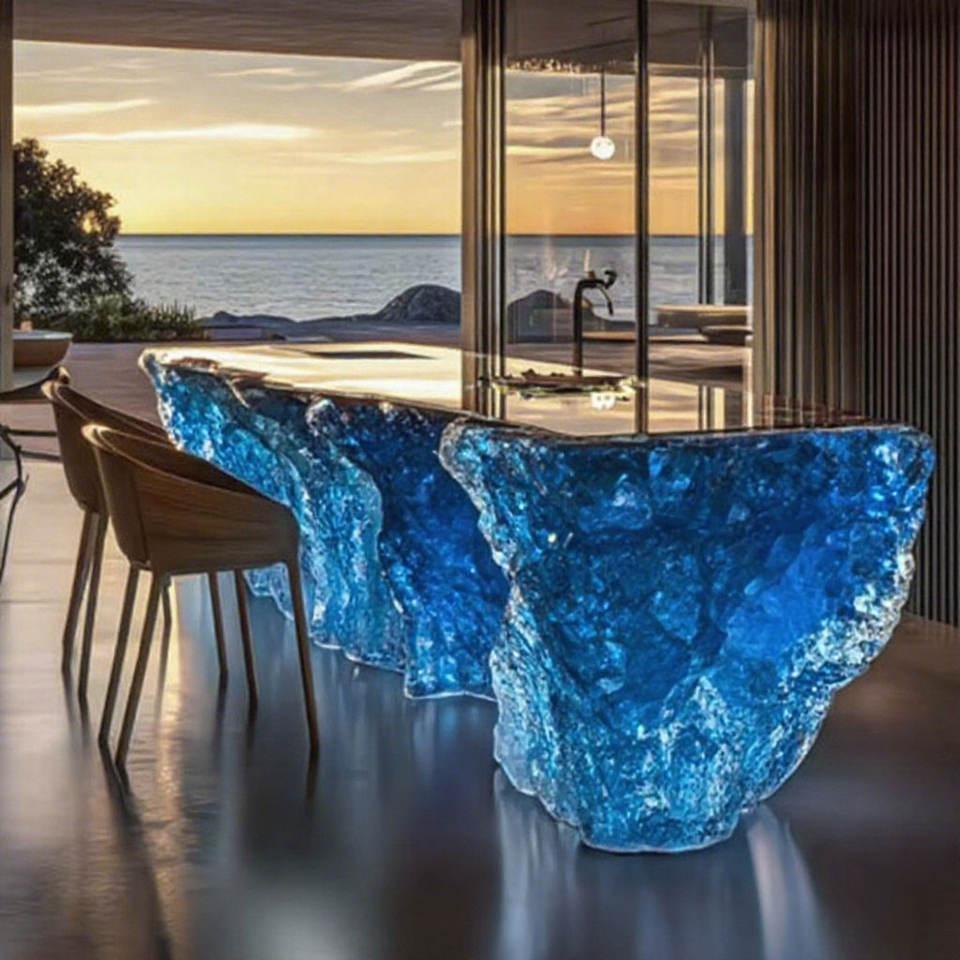 R050 High-End Transparent Crystal Resin bar Table dinning desk crystal like for Luxury Condo Living Room hotel bar salon
