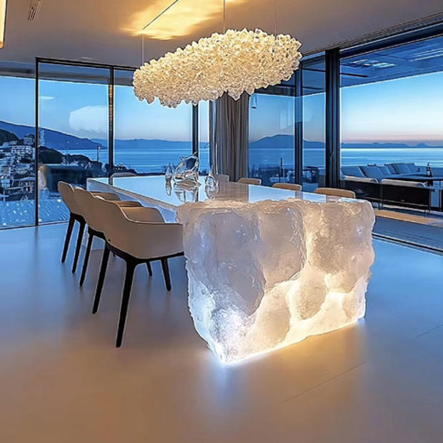 โต๊ะรับรองแขกคริสตัลใสหรูหราทันสมัย R070 โต๊ะคริสตัลสั่งทำพิเศษสำหรับล็อบบี้โรงแรม คลับ วิลล่า ออกแบบตามสั่ง