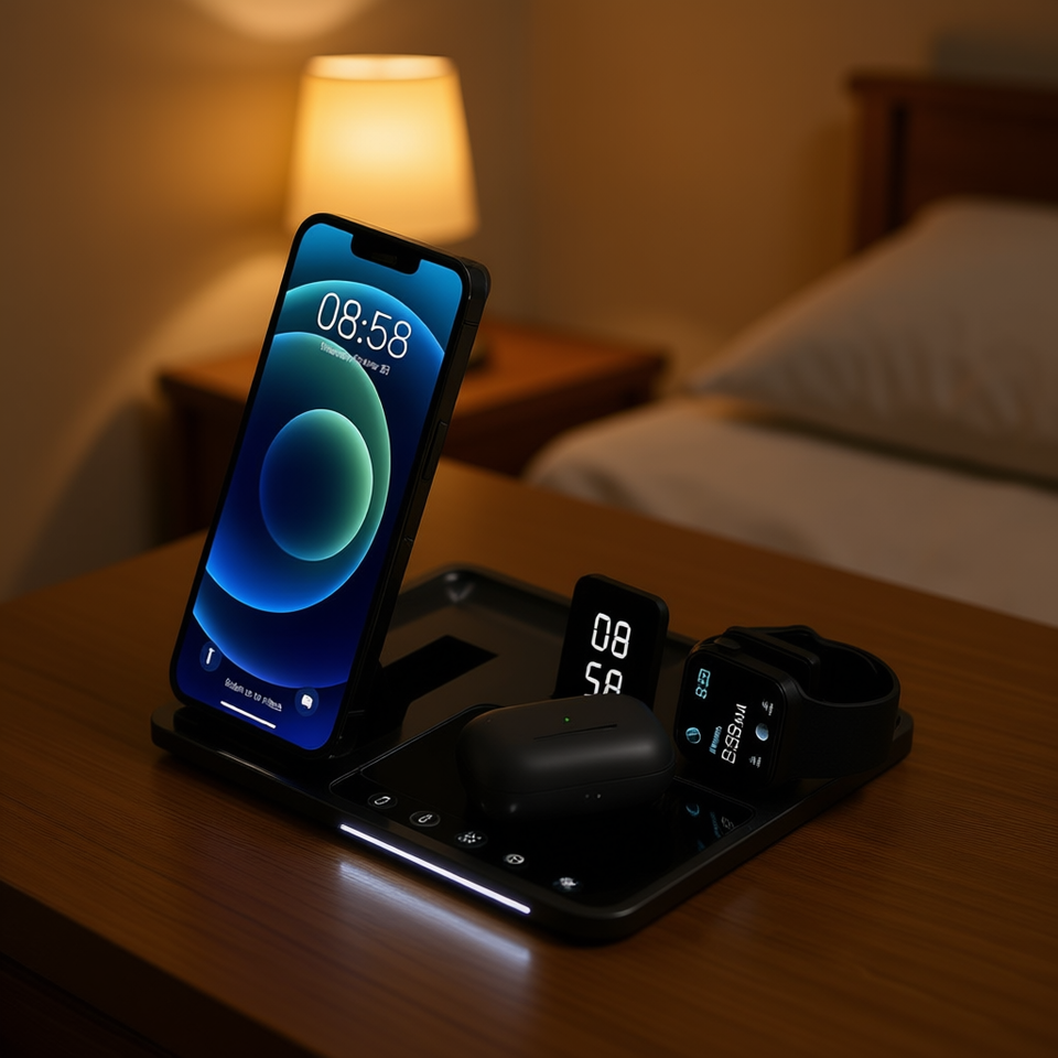 โคมไฟชาร์จไร้สาย R11พร้อมนาฬิกาแม่เหล็ก10W 5W สำหรับนาฬิกาโทรศัพท์หูฟัง USB Type C ได้รับการรับรอง ROHS