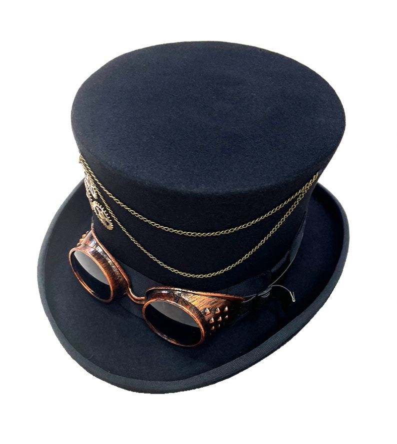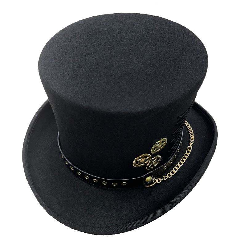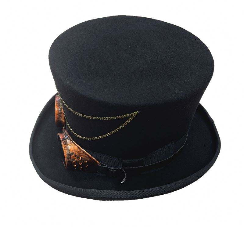 R189 หมวกทรงสูงสไตล์วินเทจแฟชั่นสตรีทสตีมพังก์ร็อก ทำจากขนสัตว์แท้ 100% สำหรับทุกเพศ ปรับขนาดได้ เหมาะสำหรับงานปาร์ตี้