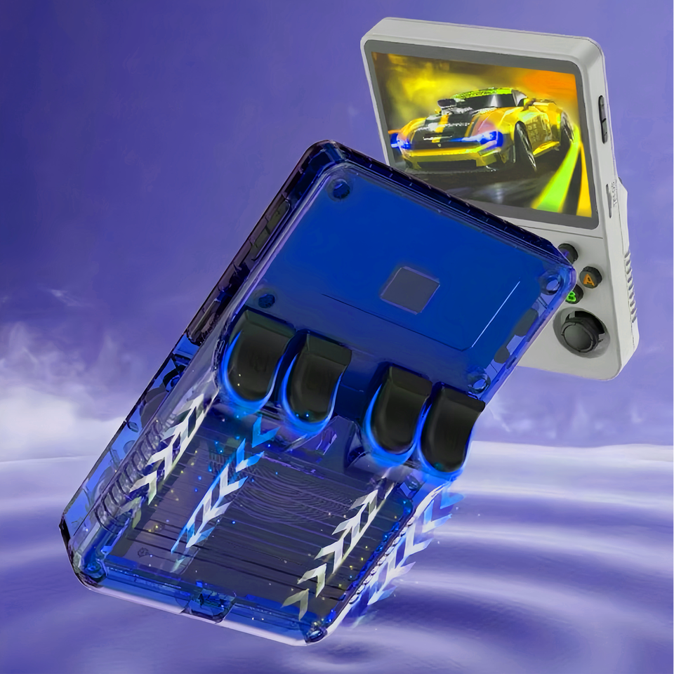 R36S โปรคอนโซลเกมมือถือ3.5นิ้วหน้าจอ IPS 21906เกมคลาสสิกที่เก็บข้อมูล128GB แบตเตอรี่3800mAh สีฟ้า