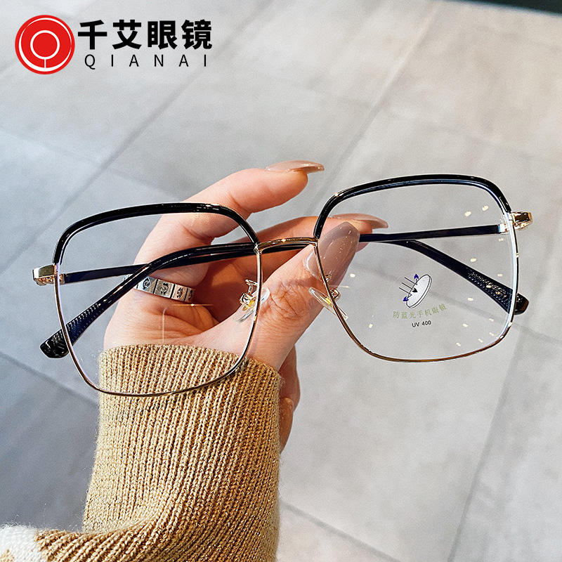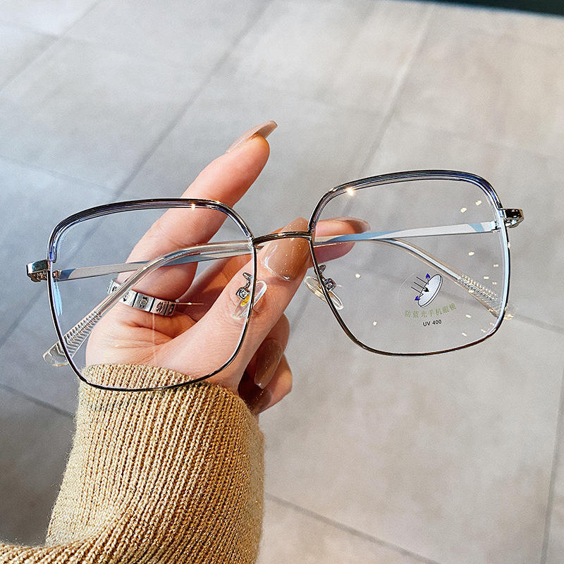R5 20033กรอบสี่เหลี่ยมผู้หญิงแว่นตา PC เลนส์ป้องกันแสงสีฟ้ากรอบเต็มป้องกันรังสียูวีสำหรับสายตาสั้นการออกแบบสี่เหลี่ยม