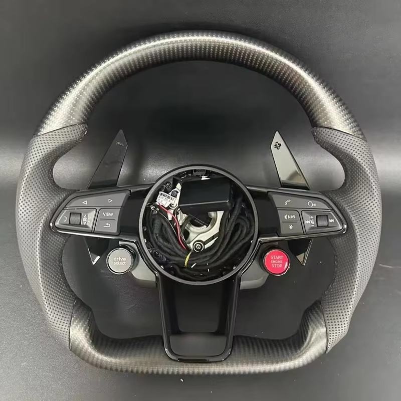 พวงมาลัยสปอร์ตหนังคาร์บอนเจาะรูแบบครึ่ง R8 40มม. สำหรับ A3 Audi A4 A5 A6 C7 C8 Q7 Q5 Q3
