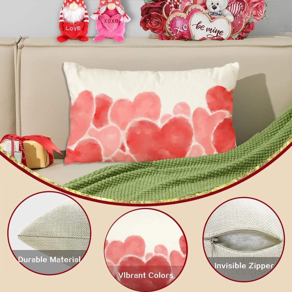 Rabusofa หมอนโซฟารูปหัวใจสีแดงสีน้ำสีขาว12x20นิ้วหมอนโซฟาตกแต่งวันครบรอบแต่งงานวาเลนไทน์