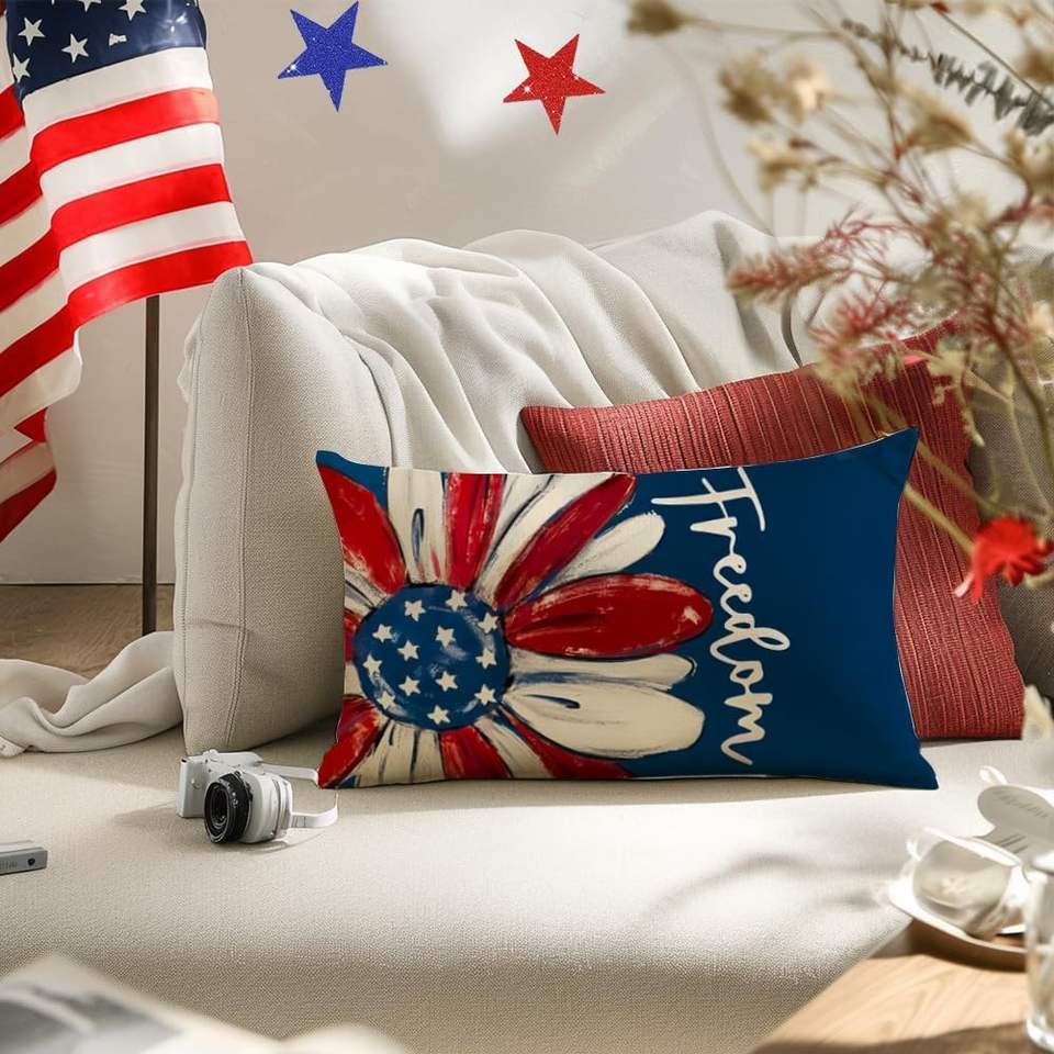 Rabusofa ปลอกหมอนลายรักชาติแบบทันสมัย4th ปลอกหมอนทำจากผ้าไหมผ้าลินินทอพิมพ์ลายรูปหัวใจสไตล์วันหยุดคริสต์มาส