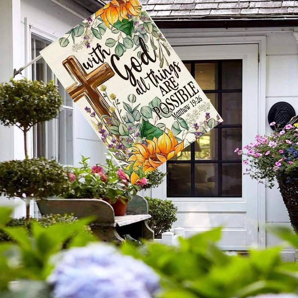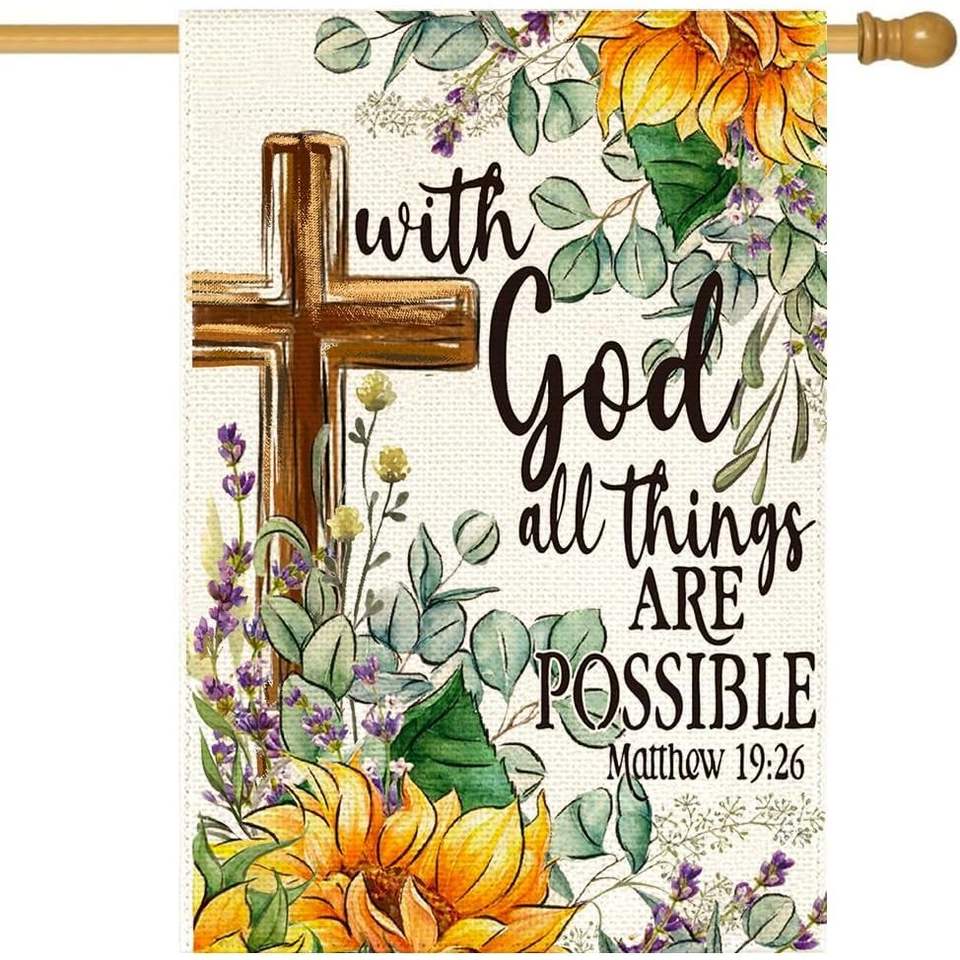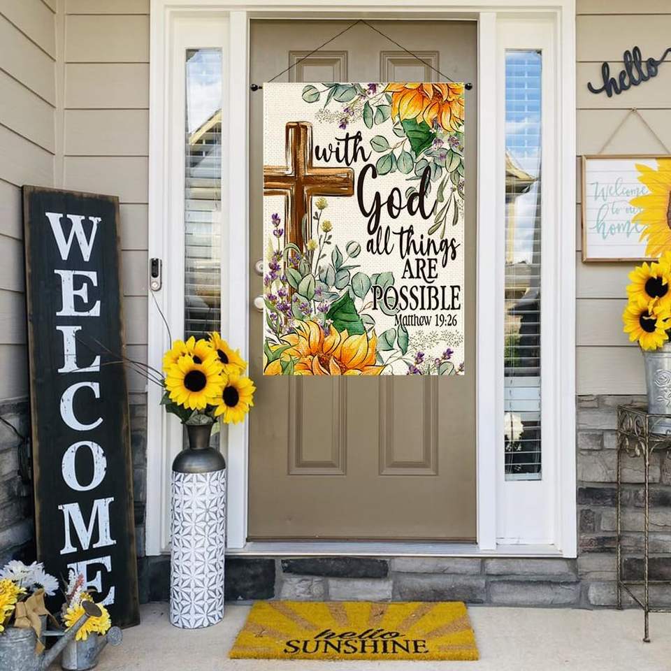 Rabusofa ธงบ้านฤดูร้อน28x40นิ้วสองด้านตกแต่งกลางแจ้งดอกทานตะวันพระเจ้าฤดูใบไม้ผลิดอกไม้ข้ามสนามขนาดใหญ่จอแสดงผลทั้งหมด