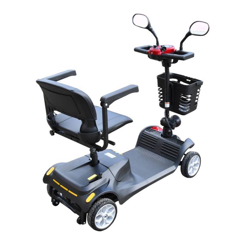 รถเข็นไฟฟ้าสี่ล้อสีแดงล้วน RACCEWAY สำหรับผู้พิการ รับน้ำหนักได้ 120 กก. ความเร็ว 8 กม./ชม.