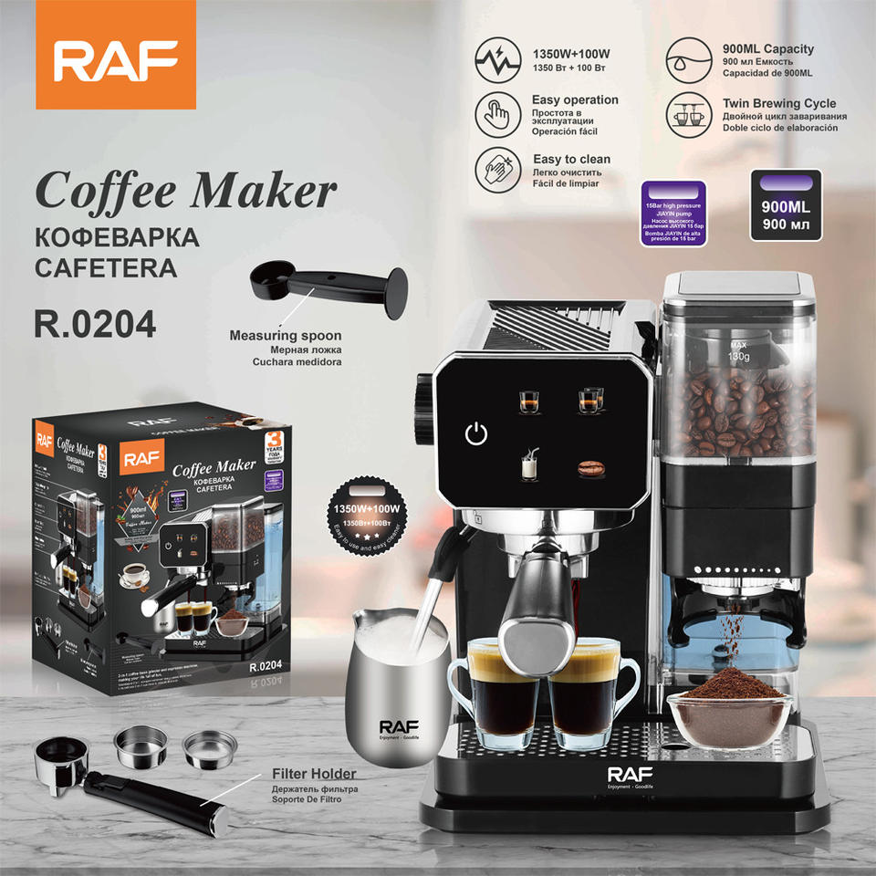 เครื่องชงกาแฟสเตนเลสสตีล RAF มาตรฐานยุโรป กึ่งอัตโนมัติ ตั้งโปรแกรมได้ สำหรับใช้ในครัวเรือน แรงดัน 15 บาร์