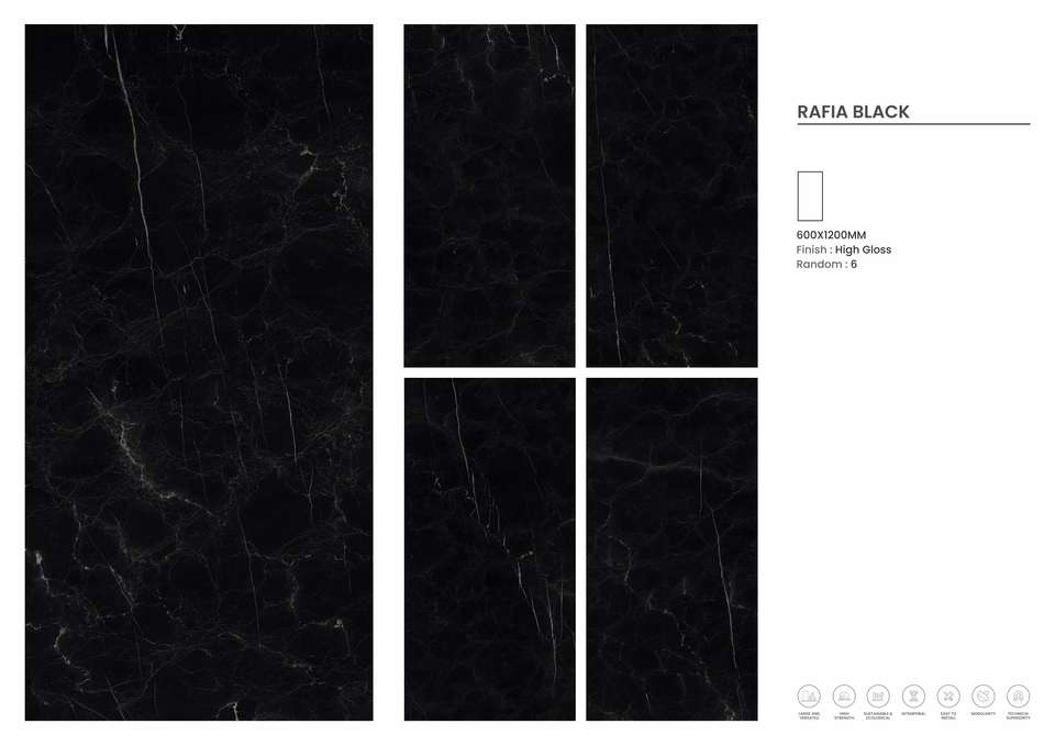 กระเบื้องพอร์ซเลนเคลือบเงาคุณภาพพรีเมียมสีดำ RAFIA