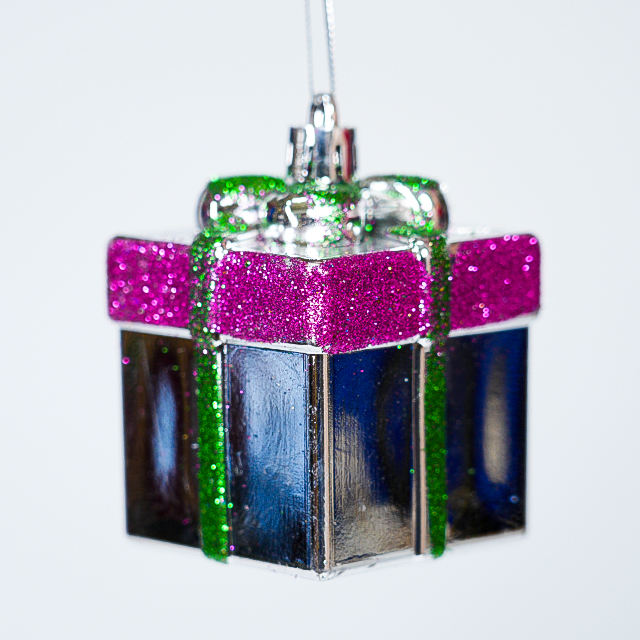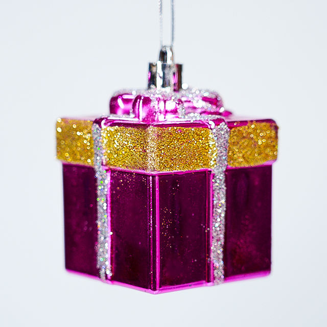 RAINBOW FZ-3804 Set of 4 Handmade High Quality Plastic Glitter Gift Box Ornaments 6cm Colorful Modern Christmas Tree Decorations