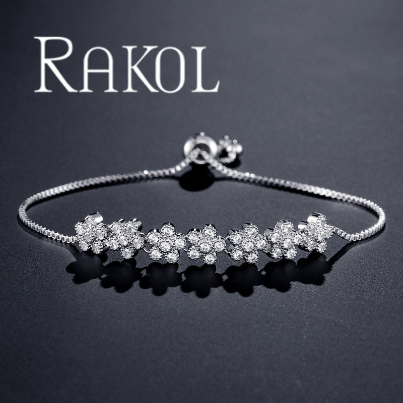 Rakol BP2054สร้อยข้อมือสำหรับผู้หญิงเซอร์โคเนียทรงดอกกุหลาบสีทอง