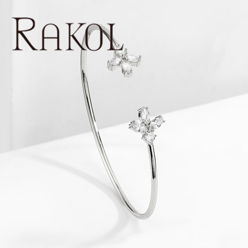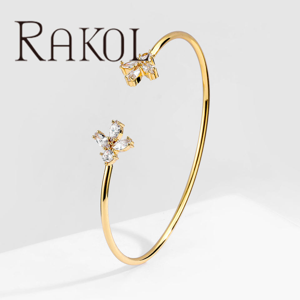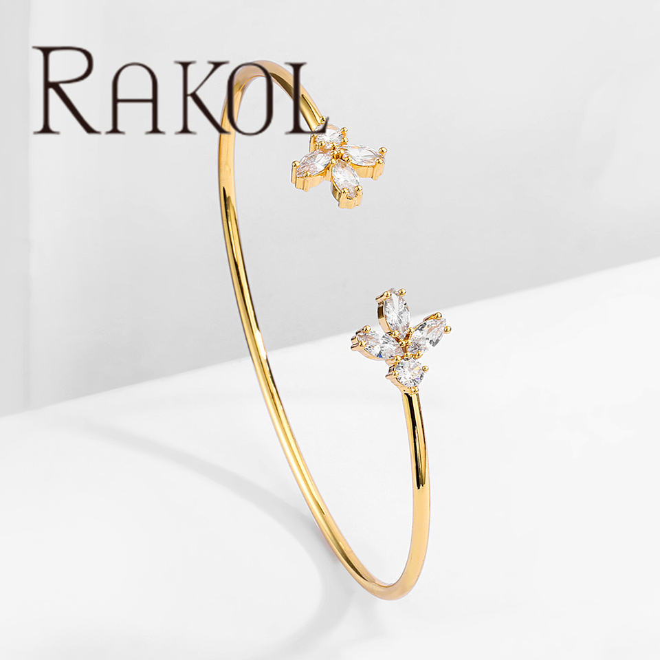 Rakol กำไลข้อมือ BP2190เซอร์คอนลายดอกไม้ทองแท้2024สร้อยข้อมือผู้หญิง