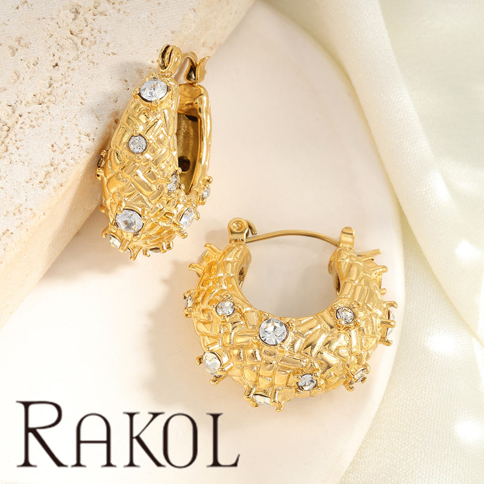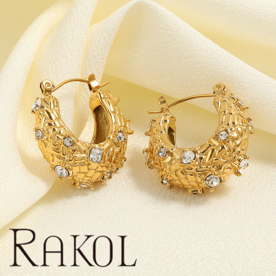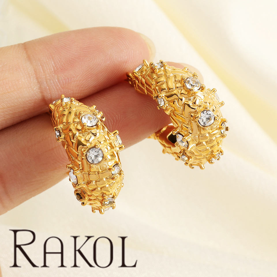 Rakol ต่างหูผู้หญิงทรงเรขาคณิต, ต่างหูสำหรับผู้หญิงเพทายรูปตัวยูไม่ซีดจาง EH8368ใหม่