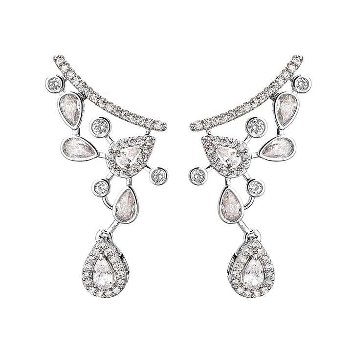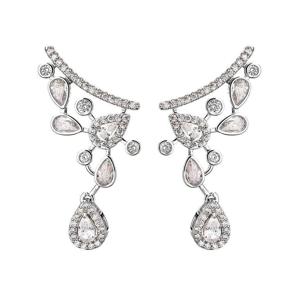 ทองเหลืองสีเงินเพทายหินดอกไม้รุ่น Dangle รายละเอียดต่างหูผู้หญิง