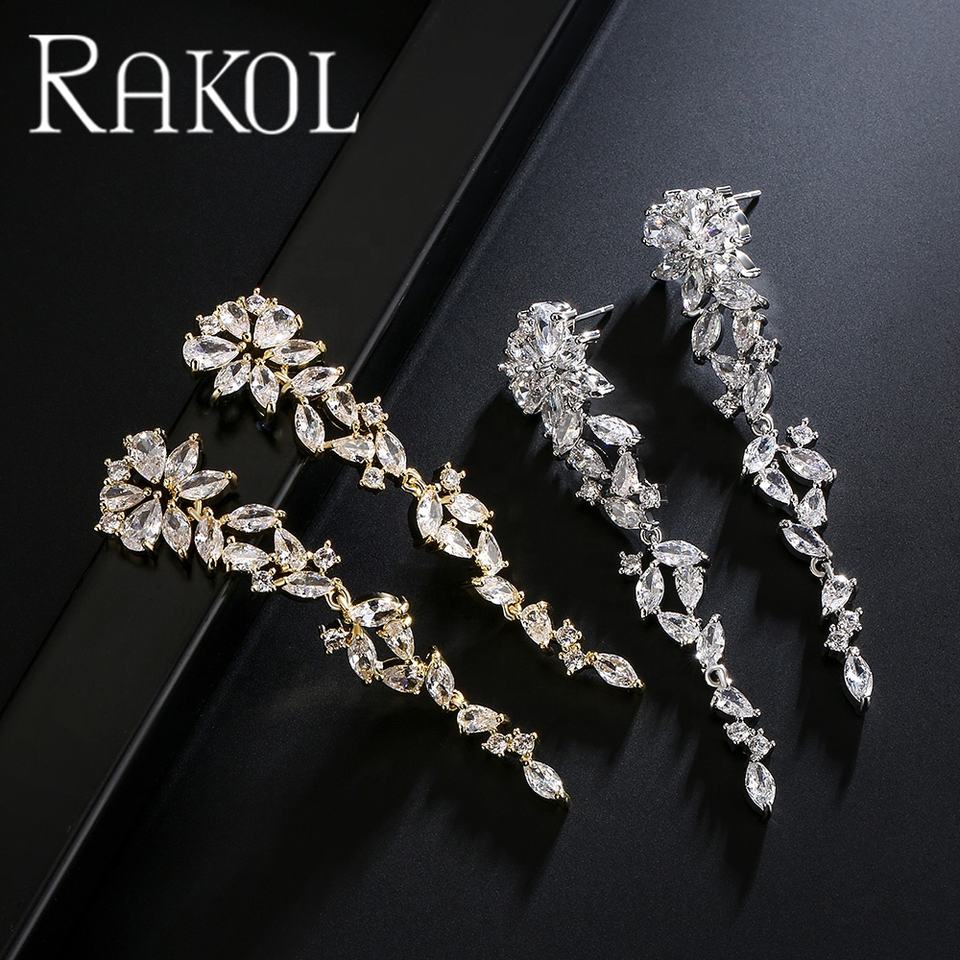 Rakol EP1206เครื่องประดับแฟชั่นหรูหราคุณภาพสูงเพทายชุบทองตุ้มหูแต่งงาน