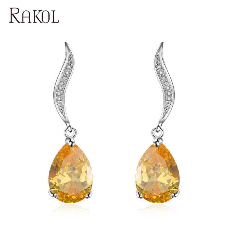Rakol ต่างหู EP2030ทรงหยดน้ำหลากสีประดับเพชรสังเคราะห์หลากสีสำหรับงานปาร์ตี้