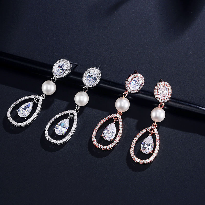 Rakol ต่างหู EP2284 zircon Pearl จี้ทองขาวสวมใส่ทุกวัน