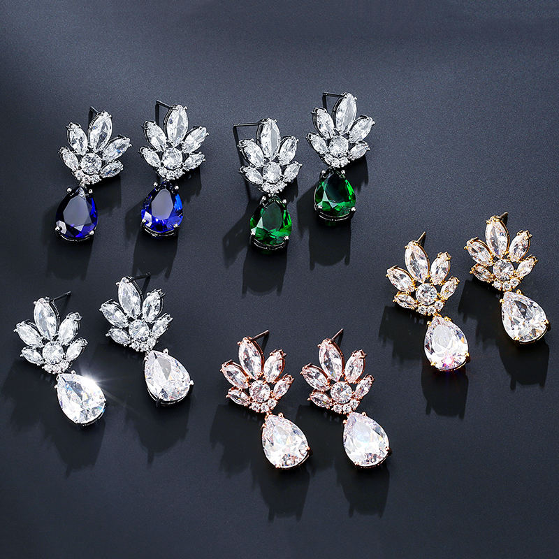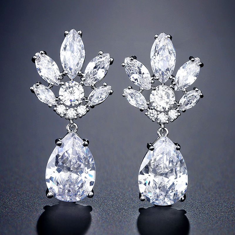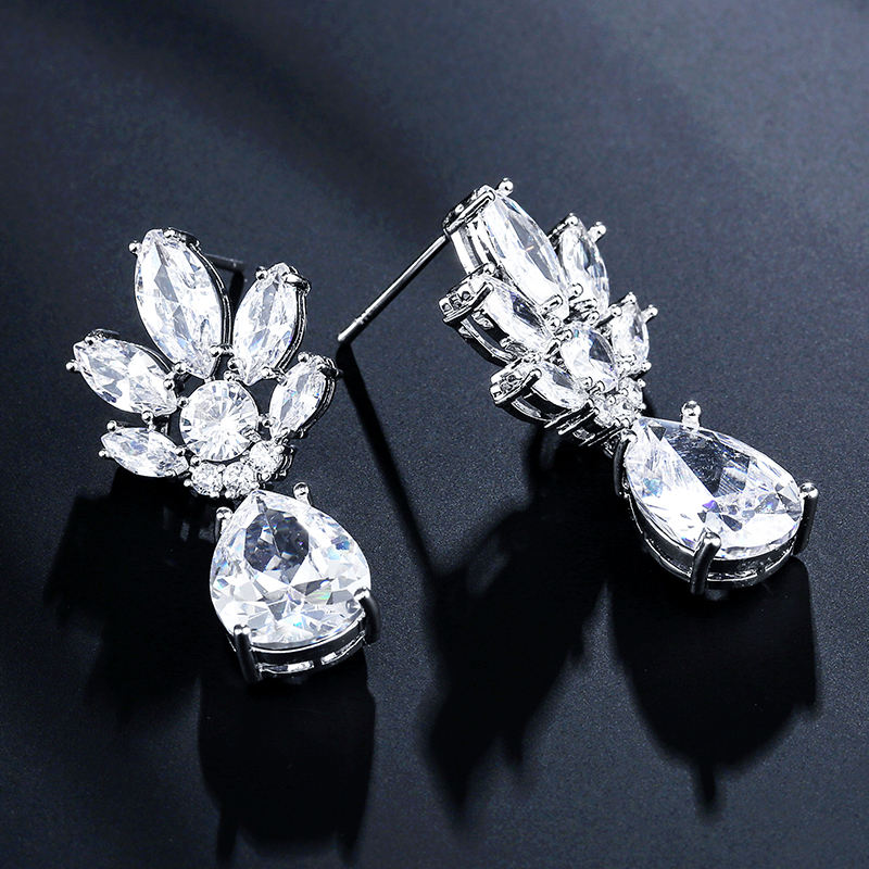 ต่างหูจี้เพชรทรงหยดน้ำประดับดอกไม้ รุ่น RAKOL EP2333 สำหรับเจ้าสาว