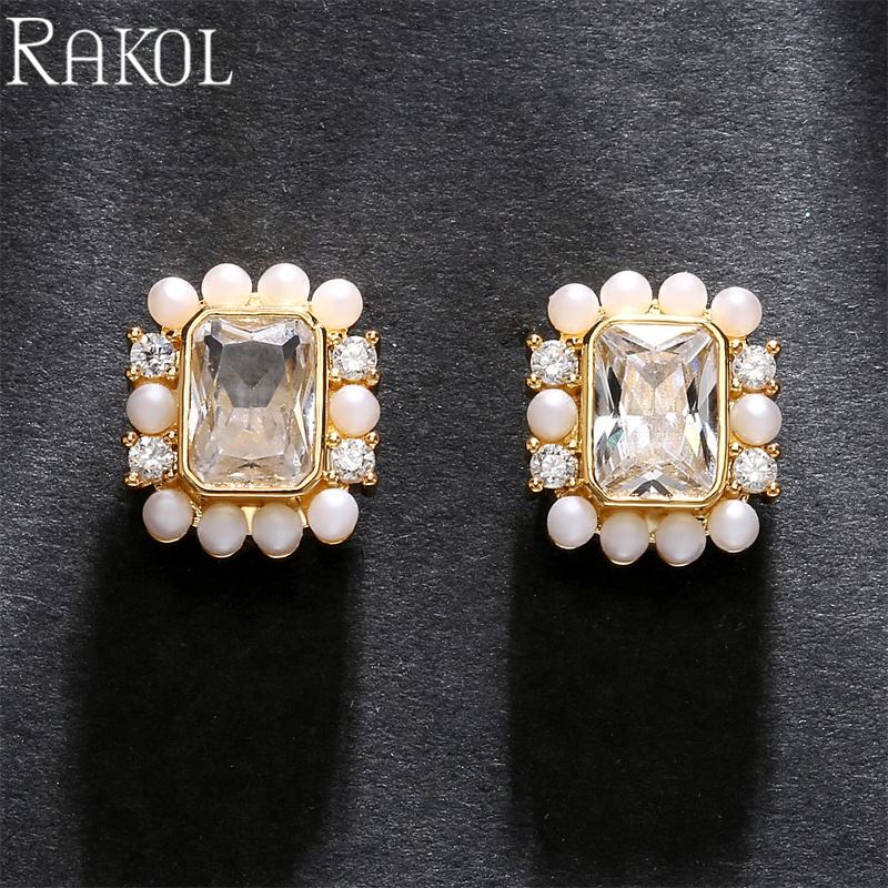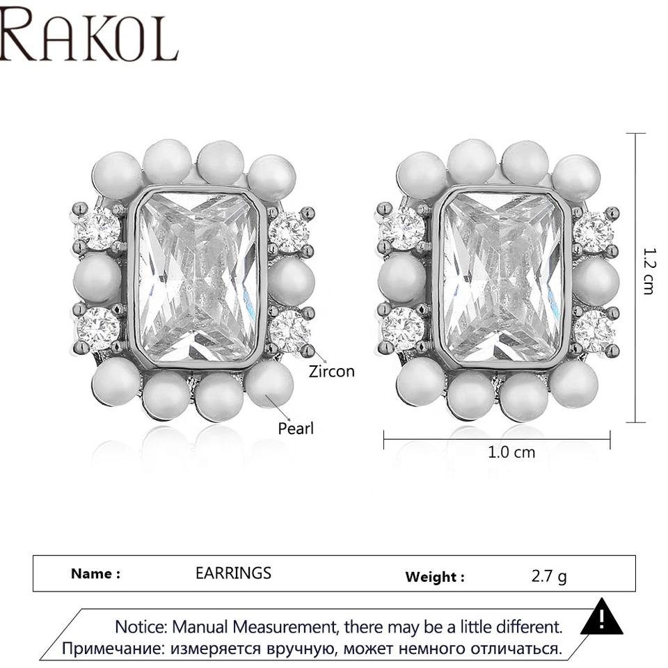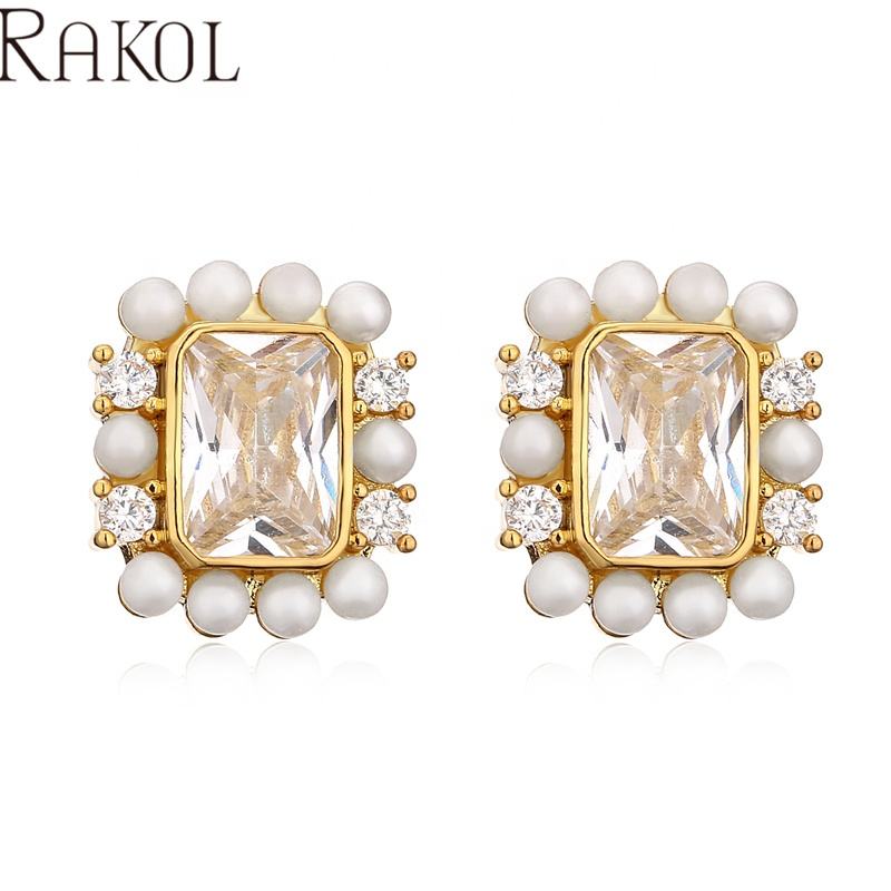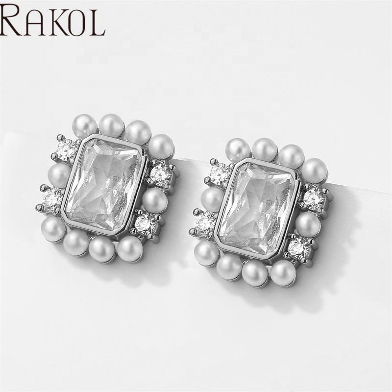 Rakol EP5544ผู้หญิงเครื่องประดับแฟชั่นประดับด้วยลูกปัดเพทายทรงสี่เหลี่ยมหรูหราต่างหูแฟนซีของขวัญคริสต์มาส