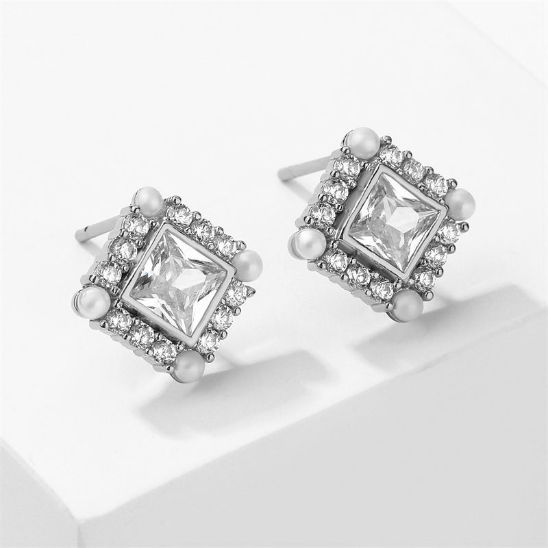 Rakol EP5546ต่างหูครูดีไซน์ใหม่ล่าสุดเครื่องประดับลูกบาศก์เพทายสี่เหลี่ยมต่างหูไข่มุกเม็ดเล็กชุบทองสีเงิน