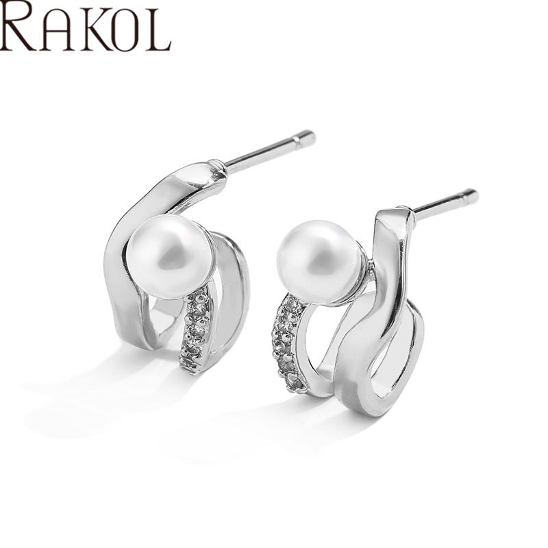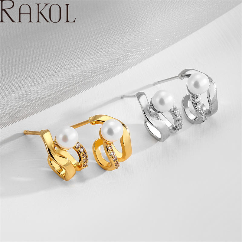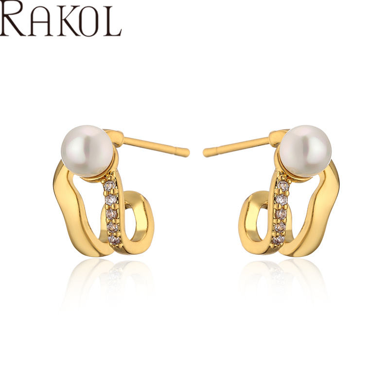 Rakol ต่างหูเพทายสีทองรูปดอกไม้ EP5604เครื่องประดับแฟชั่น