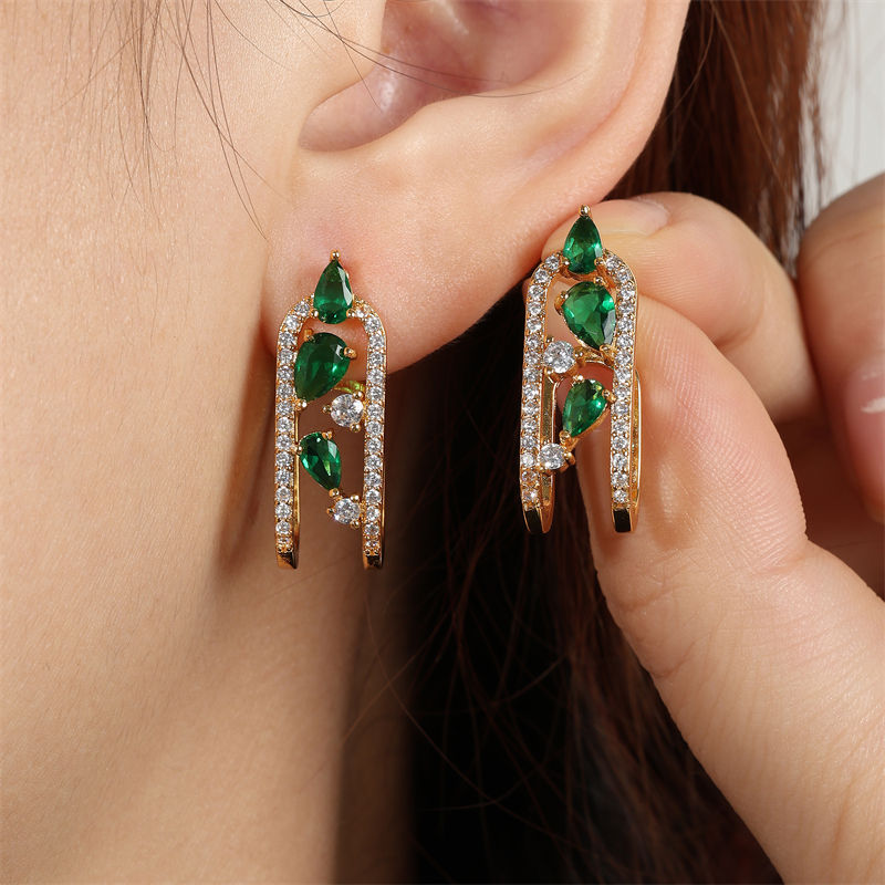 RAKOL EP5797 Micro Cubic Zirconia Hoop Gold Plated Oval Hie Green Zircon Stud Jewelry Women's Earrings