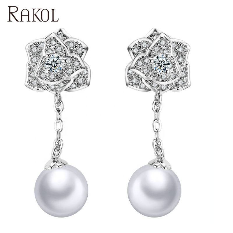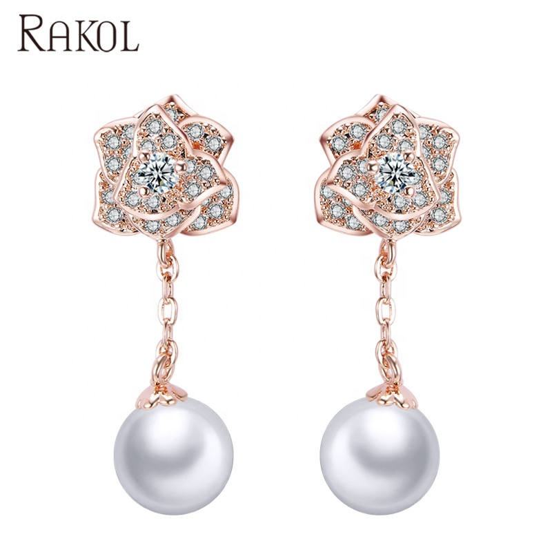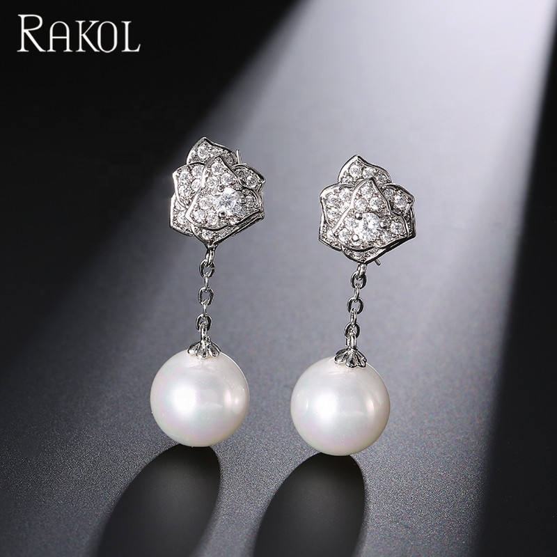 Rakol เครื่องประดับ EP591ไมโครอินเลย์ AAA ลูกบาศก์เซอร์โคเนียต่างหูไข่มุกพลอยเทียมเครื่องประดับงานแต่ง