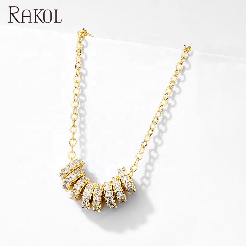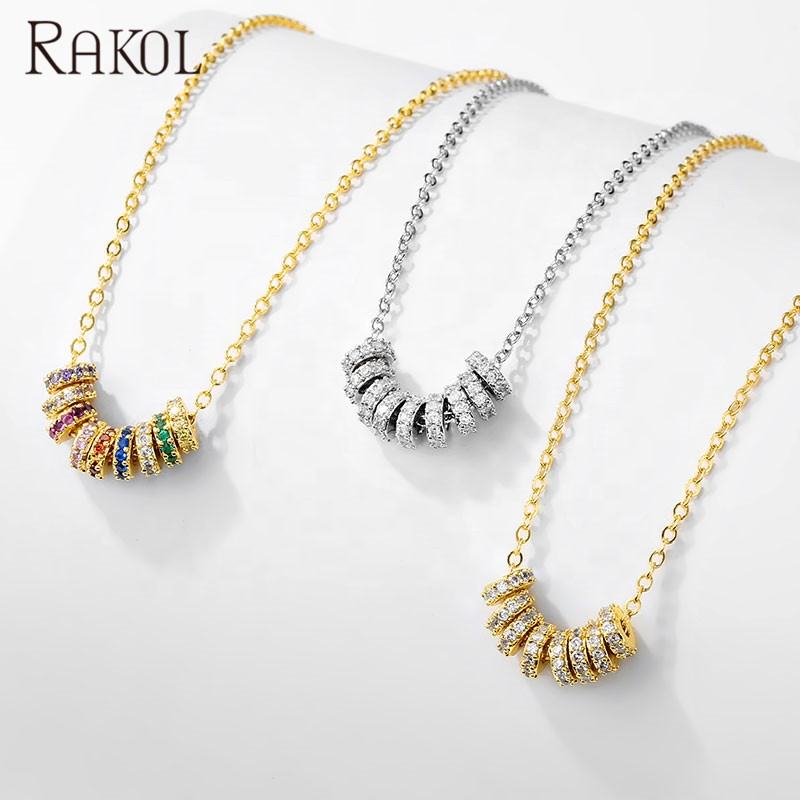 Rakol NP2167สร้อยคอจี้กลมเซอร์โคเนียสีสันสดใสเครื่องประดับทองแท้สำหรับผู้หญิง