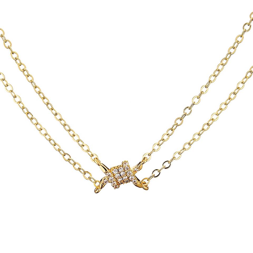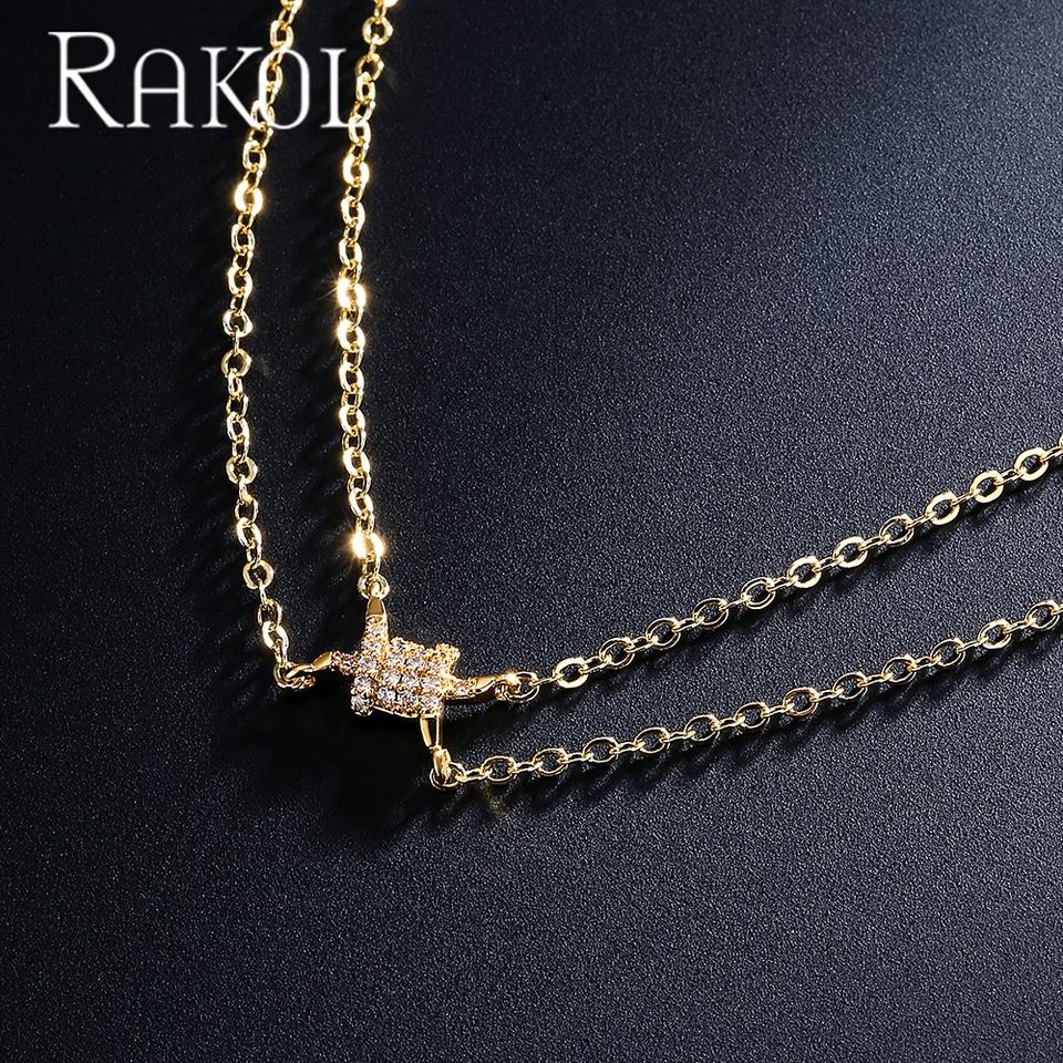 RAKOL NP2249 Fashion Cute Chain Cubic Zirconia Double Layer Personalized Women's 2022 18K Gold Plated Pendant Necklace