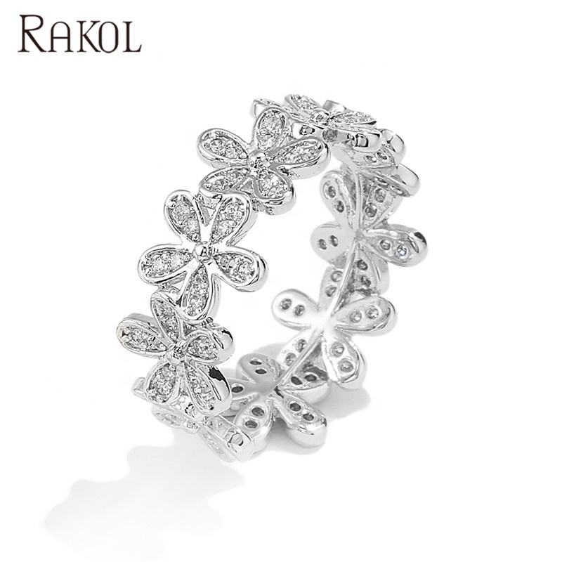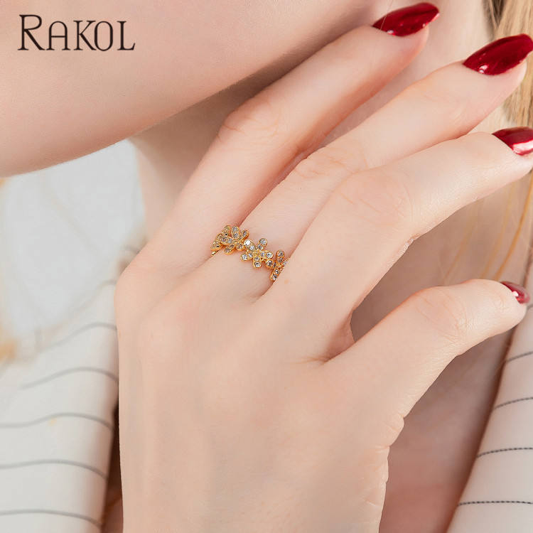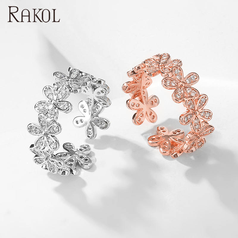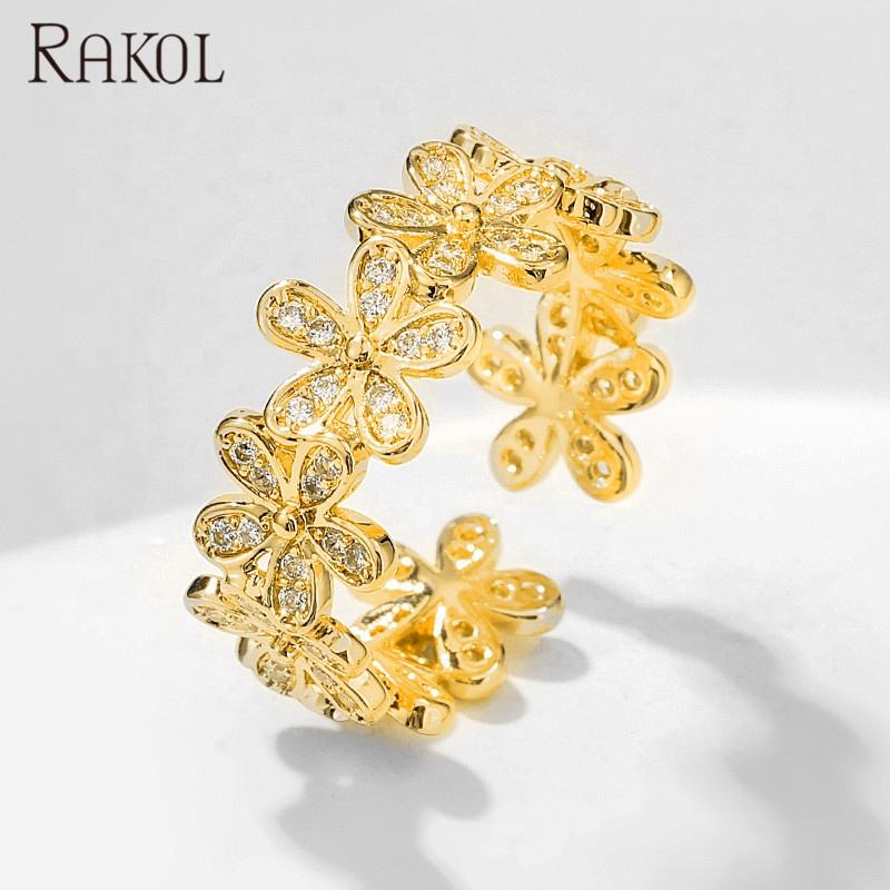 Rakol เครื่องประดับสตรีแหวนทองดีไซน์2021ลายดอกไม้แบบเปิดและปรับได้ RP2217