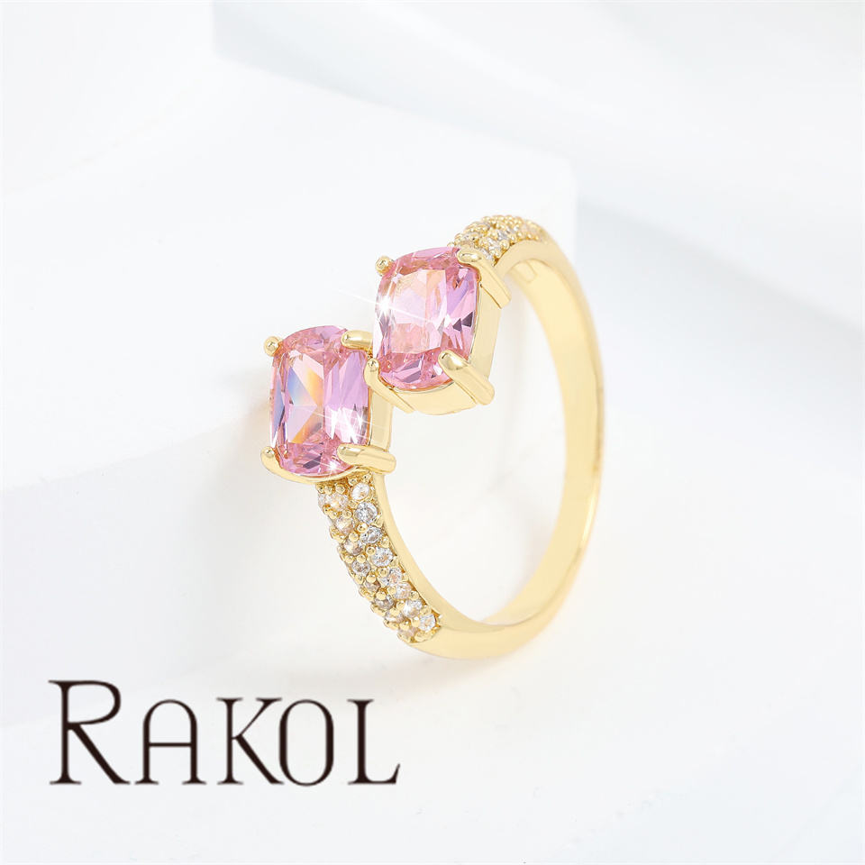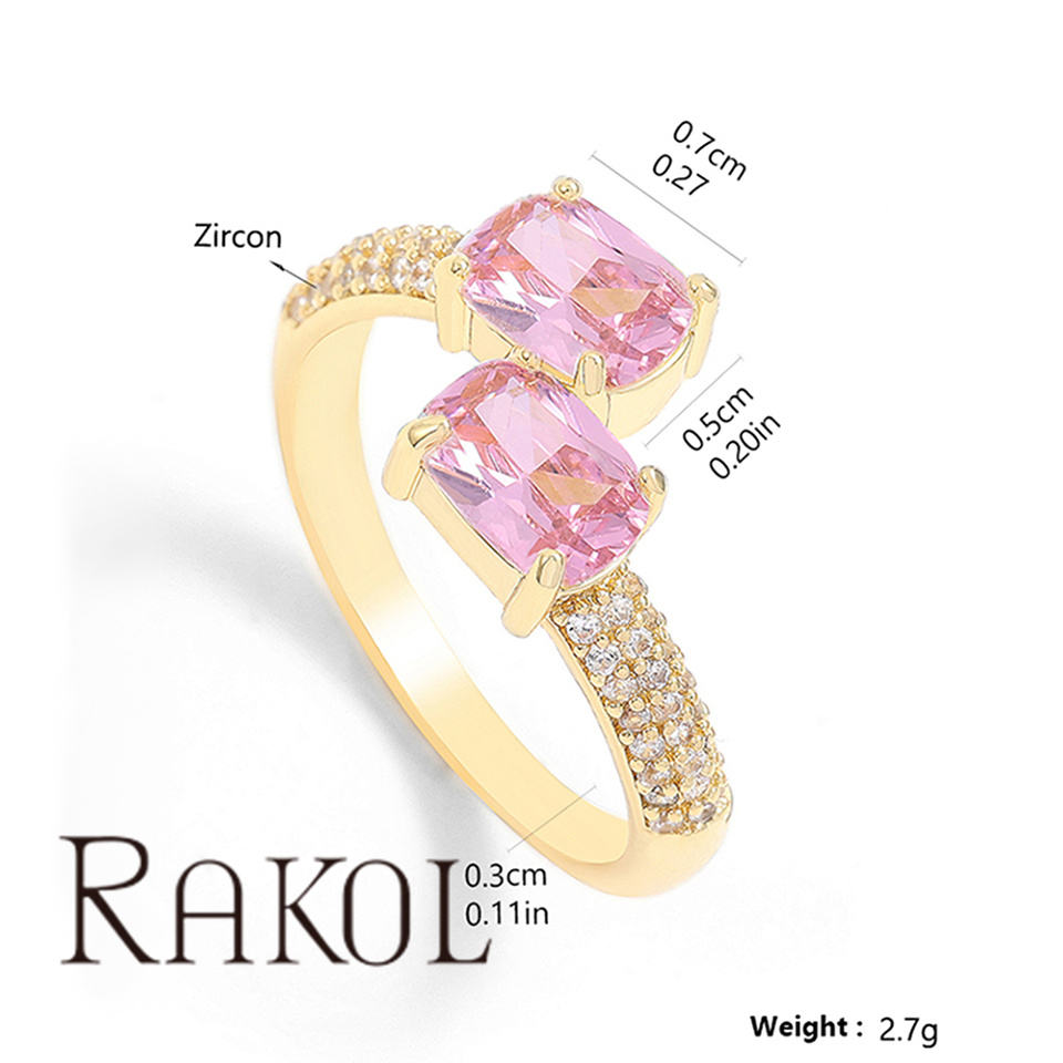 Rakol แหวนผู้หญิงเซอร์คอนเปิด3A แบบปรับได้ประณีตชุบทองชมพู RP5446ขนาดเล็ก