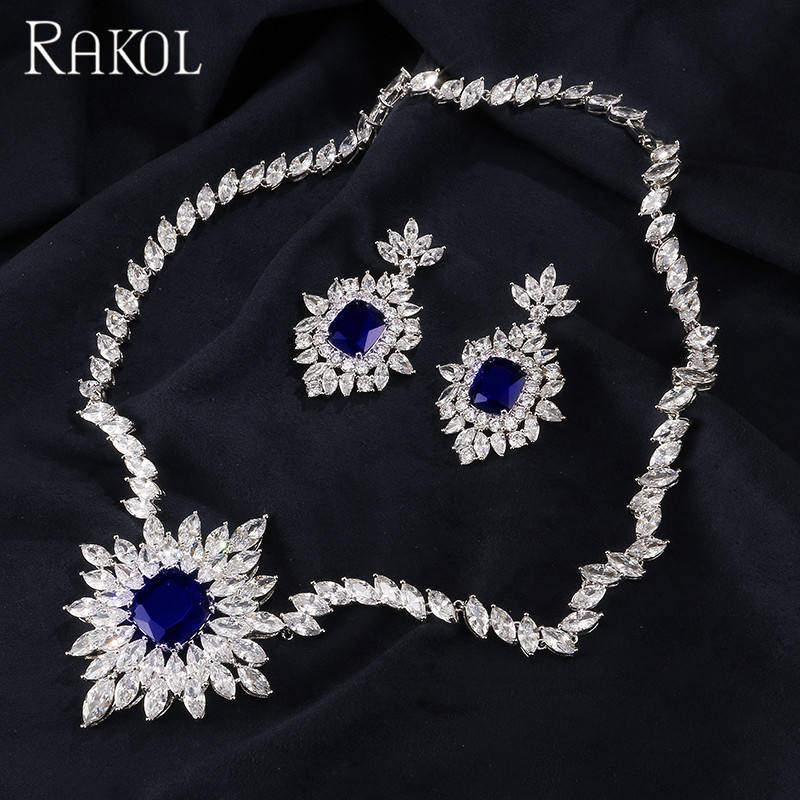 SP294 rakol ชุดเครื่องประดับงานหมั้นสำหรับผู้หญิงชุดเครื่องประดับเพทายสีเขียวมรกตสีเขียวหรูหรา