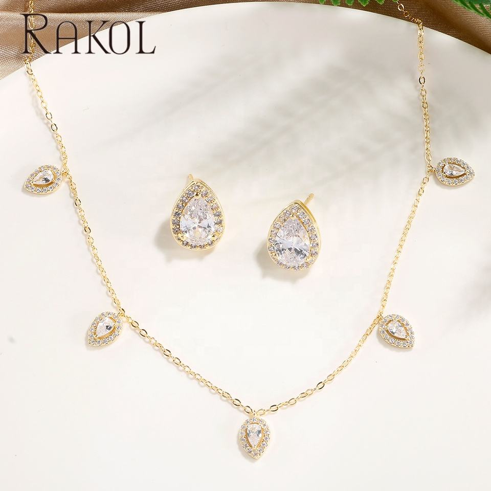Product Name:RAKOL Water Drop Earrings Pendant CZ Ten