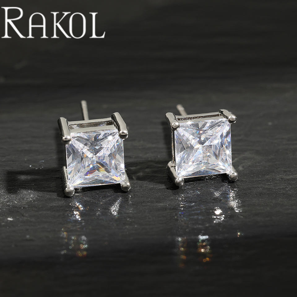 ภาพ:RAKOL ZPE323 Square Sparkling Zircon Four Prong Stud Earrings