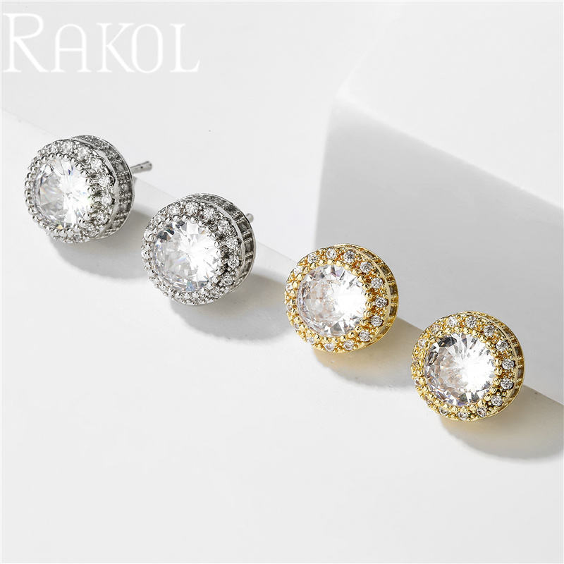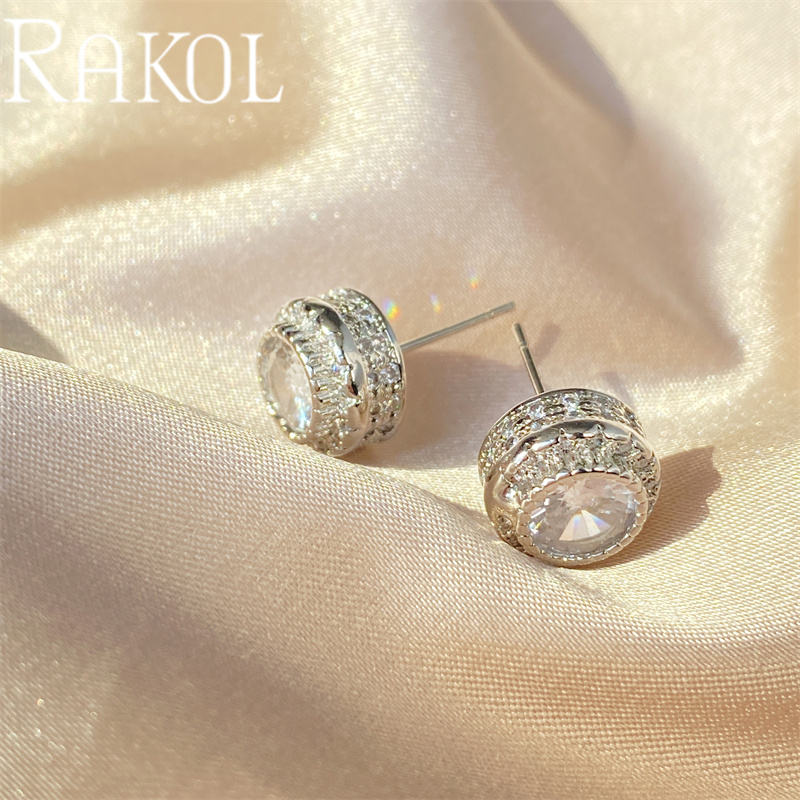 Rakol ต่างหูสตั๊ดสำหรับผู้หญิงทันสมัยแบรนด์แฟชั่นเพทายทรงกลมขายดี ZPE610ส่วนบุคคล