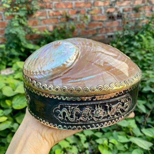 ที่ใส่ของที่ระลึกประดับเปลือกหอยเป๋าฮื้อโบราณหายาก
