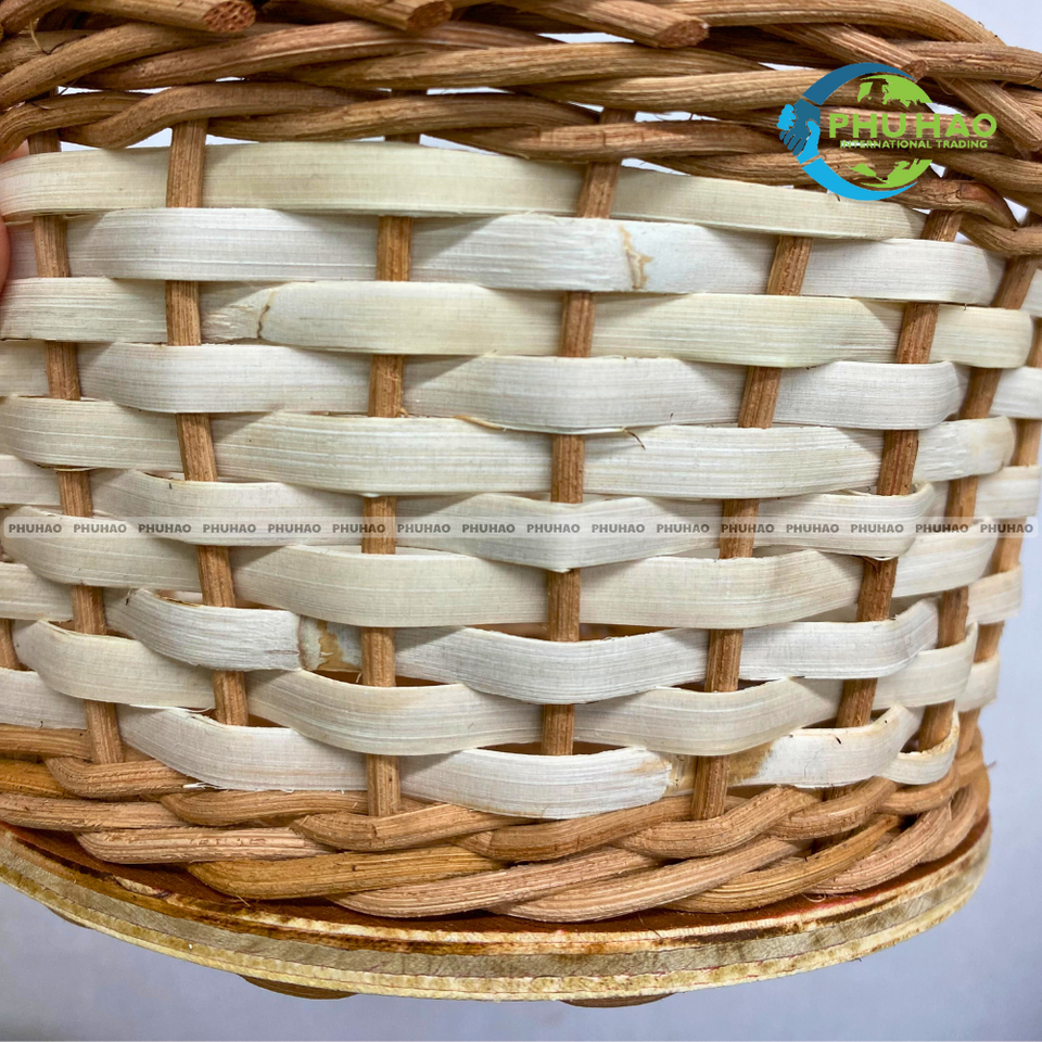 ตะกร้าใส่ขนมปังหวาย ตะกร้าหวายพร้อมฐานไม้ สำหรับร้านกาแฟและบิสโทร งานฝีมือเวียดนาม ตกแต่งโต๊ะอาหาร