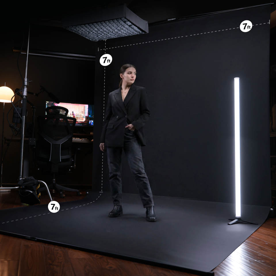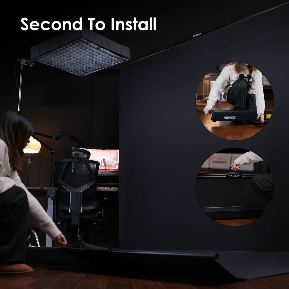 ฉากหลังพับได้ RAUBAY สีดำ รุ่น FloorFlex ขนาด 7x7x7 ฟุต - ฉากหลังแบบพกพา ยืดหดได้ ผลิตจากโพลีเอสเตอร์ ไม่ยับ