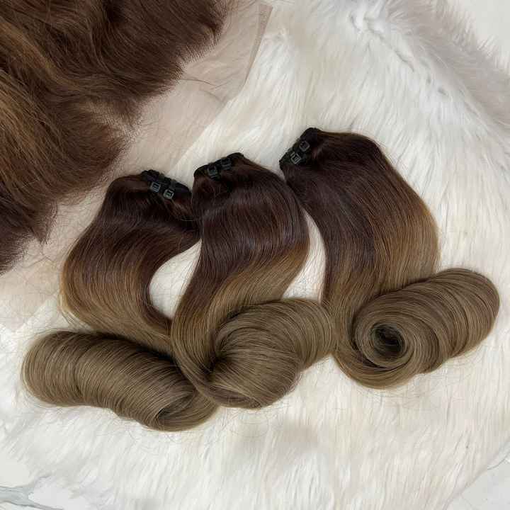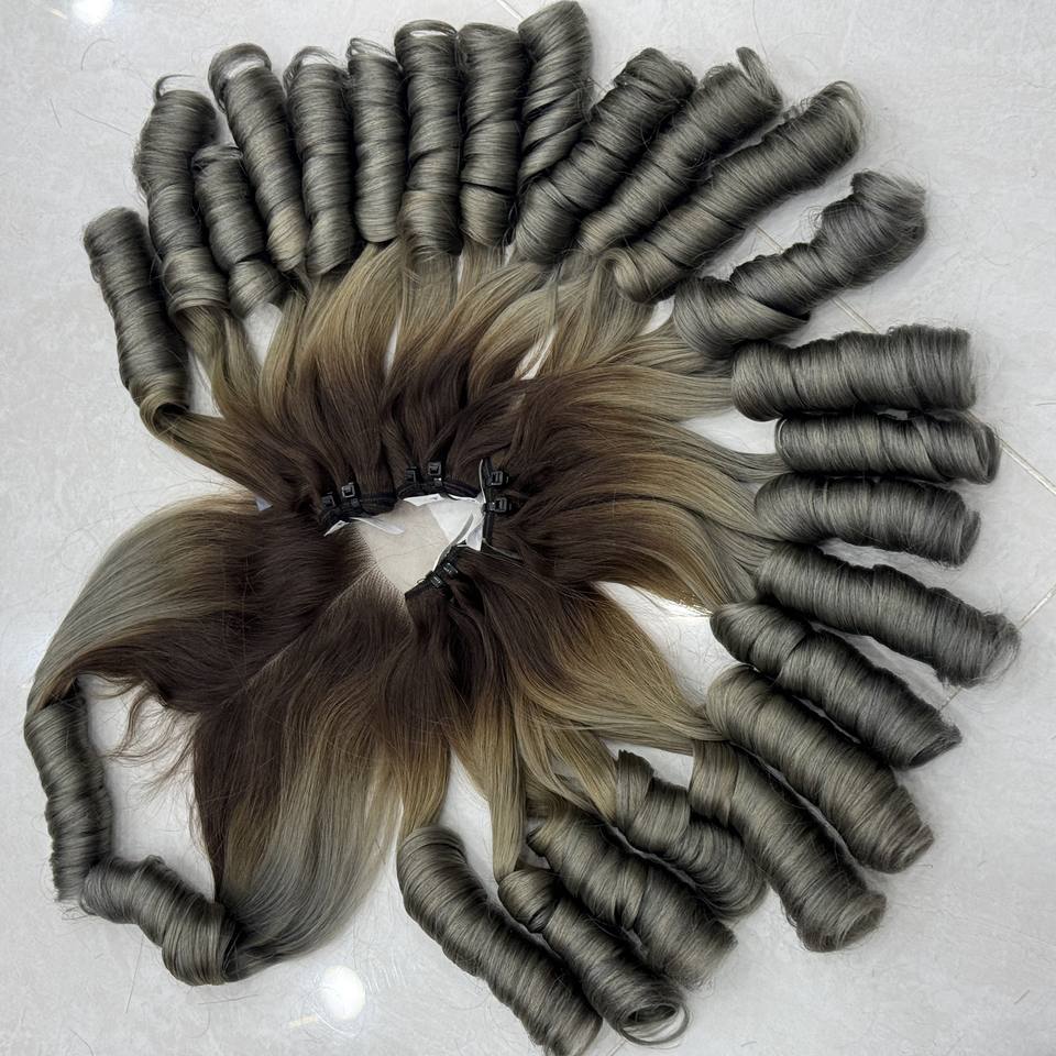 ผมต่อสำหรับคนผมมนุษย์ผมหยิกสดสีน้ำตาลเข้มไล่ระดับสีออมเบร
