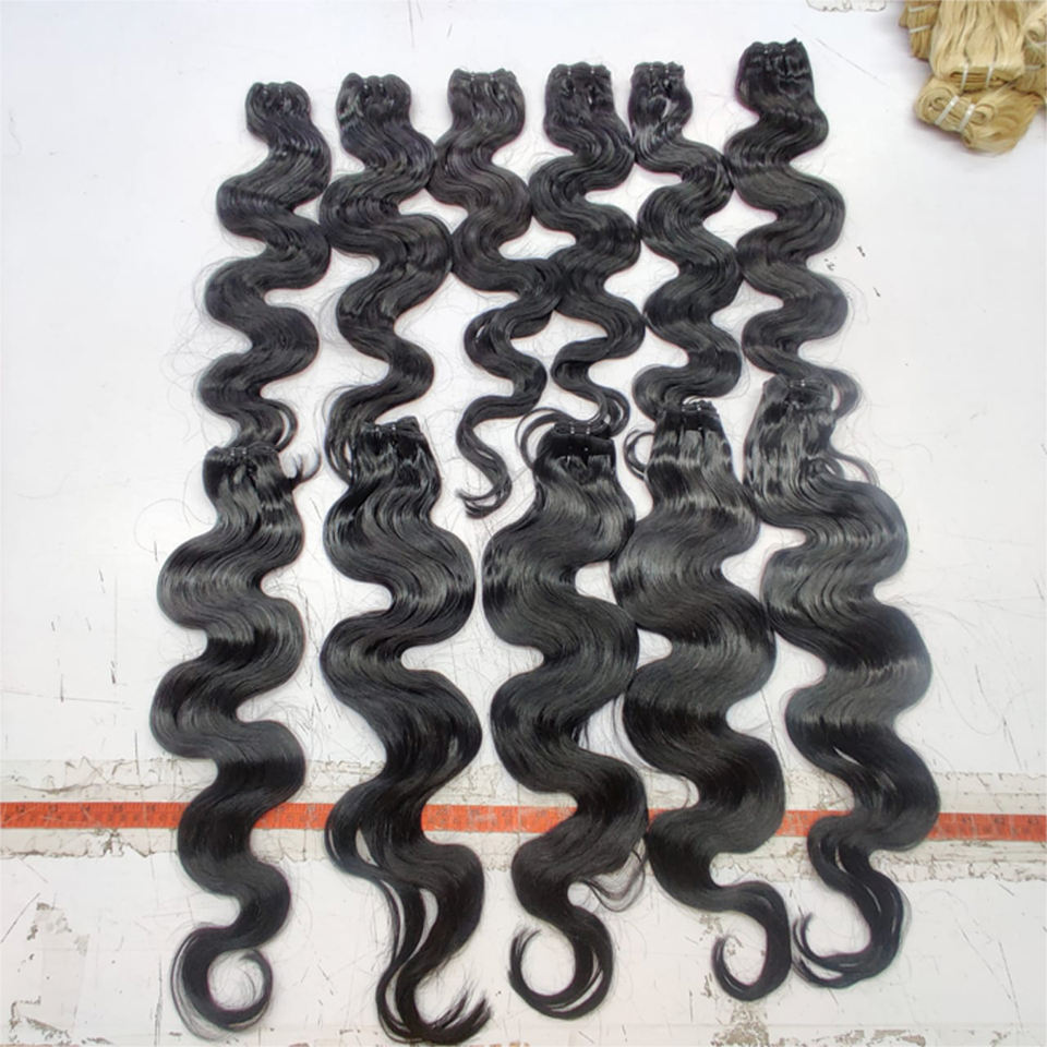 ผมดิบต่อร่างกาย ต่อผมอินเดียหยักหยัก 100% ผู้ให้บริจาคเดี่ยว ต่อผมวัดอินเดียพร้อมหนังกําพร้าที่จัดแนวกันเรียบเนียนและยาว