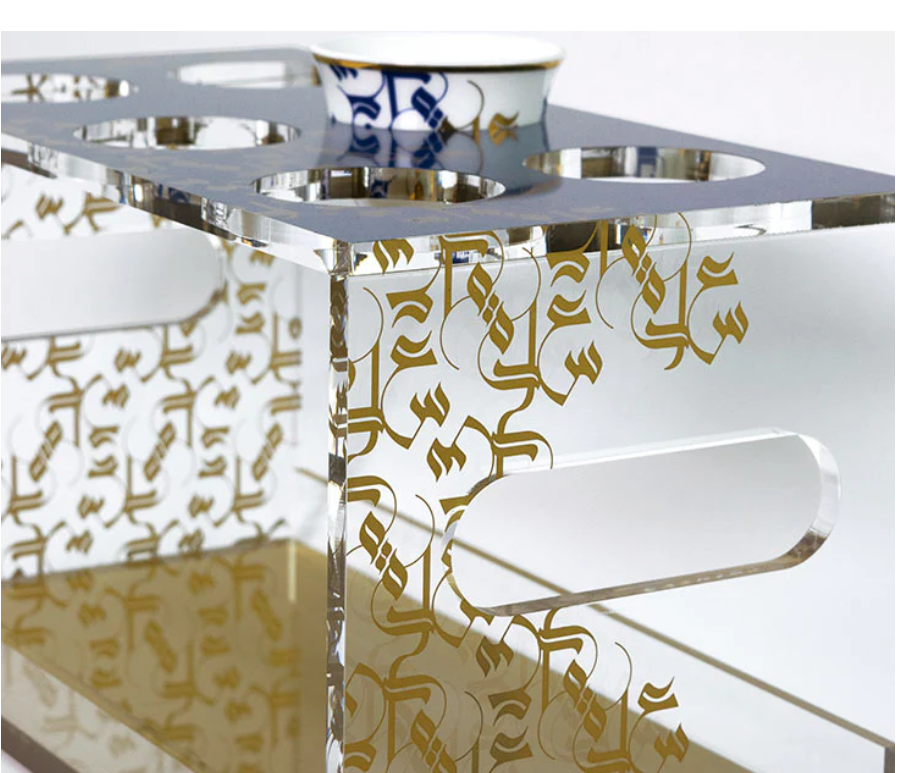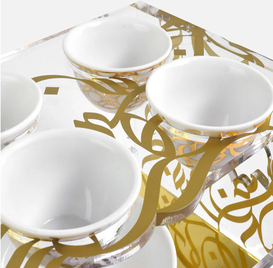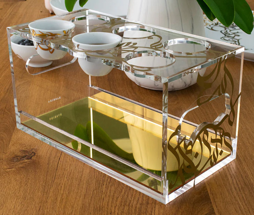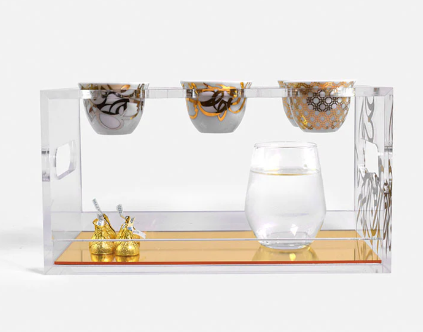 ที่วางแก้วกาแฟอะคริลิคแบบอารบิกพร้อมที่วางช็อกโกแลต ลายรอมฎอนมูบารัค ของ RAY YI พร้อมของตกแต่งรอมฎอน ปี 2024