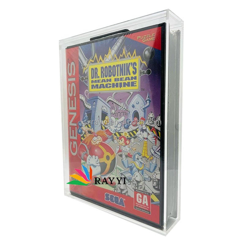 RAY YI เคสโชว์เกม,เคสอะคริลิก Sega Genesis สำหรับกล่องวิดีโอเกมกันรังสี UV
