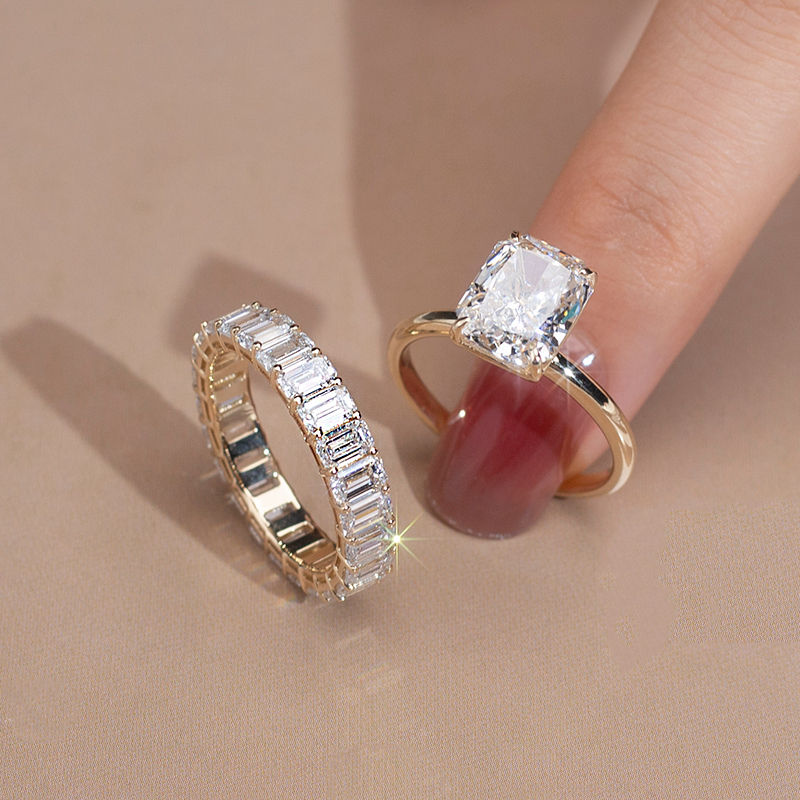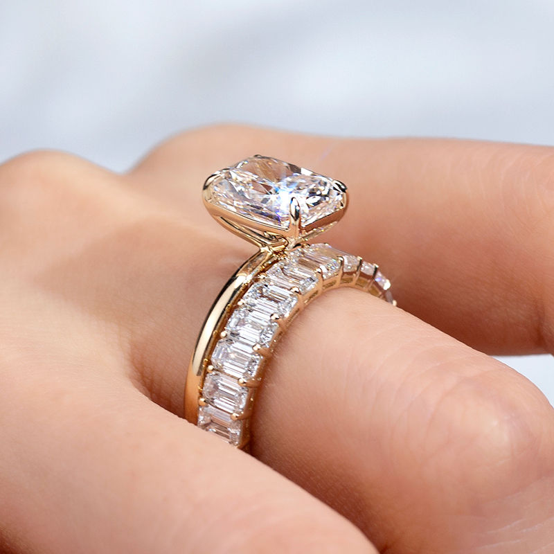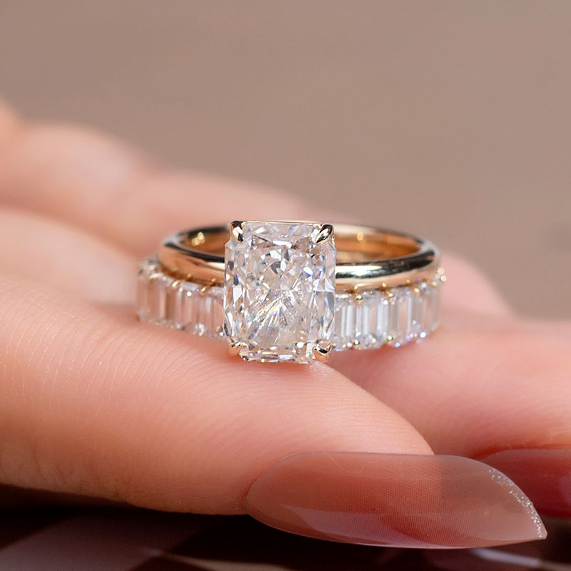 แหวนหมั้นและแต่งงานสำหรับผู้หญิง RB Gems ชุบทอง 10K ประดับเพชร 18K น้ำหนัก 3 กะรัต ทรงกลมเจียระไนแบบบริลเลียนท์ ได้รับการรับรองจาก IGI