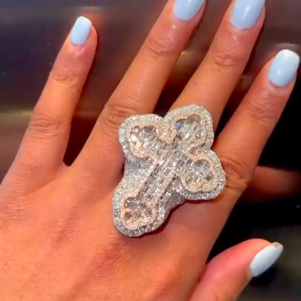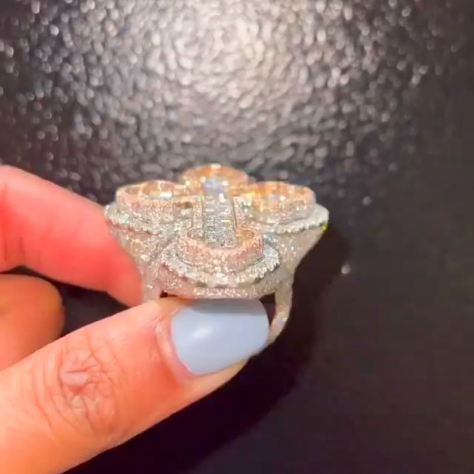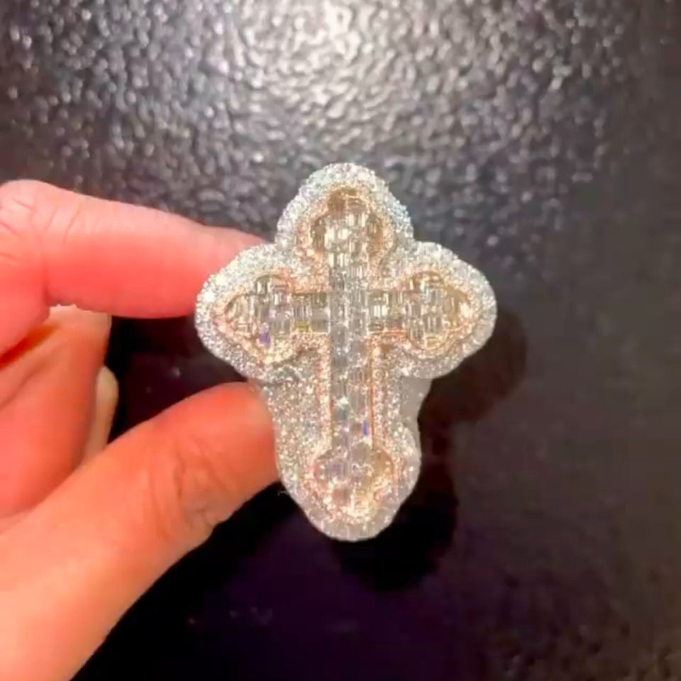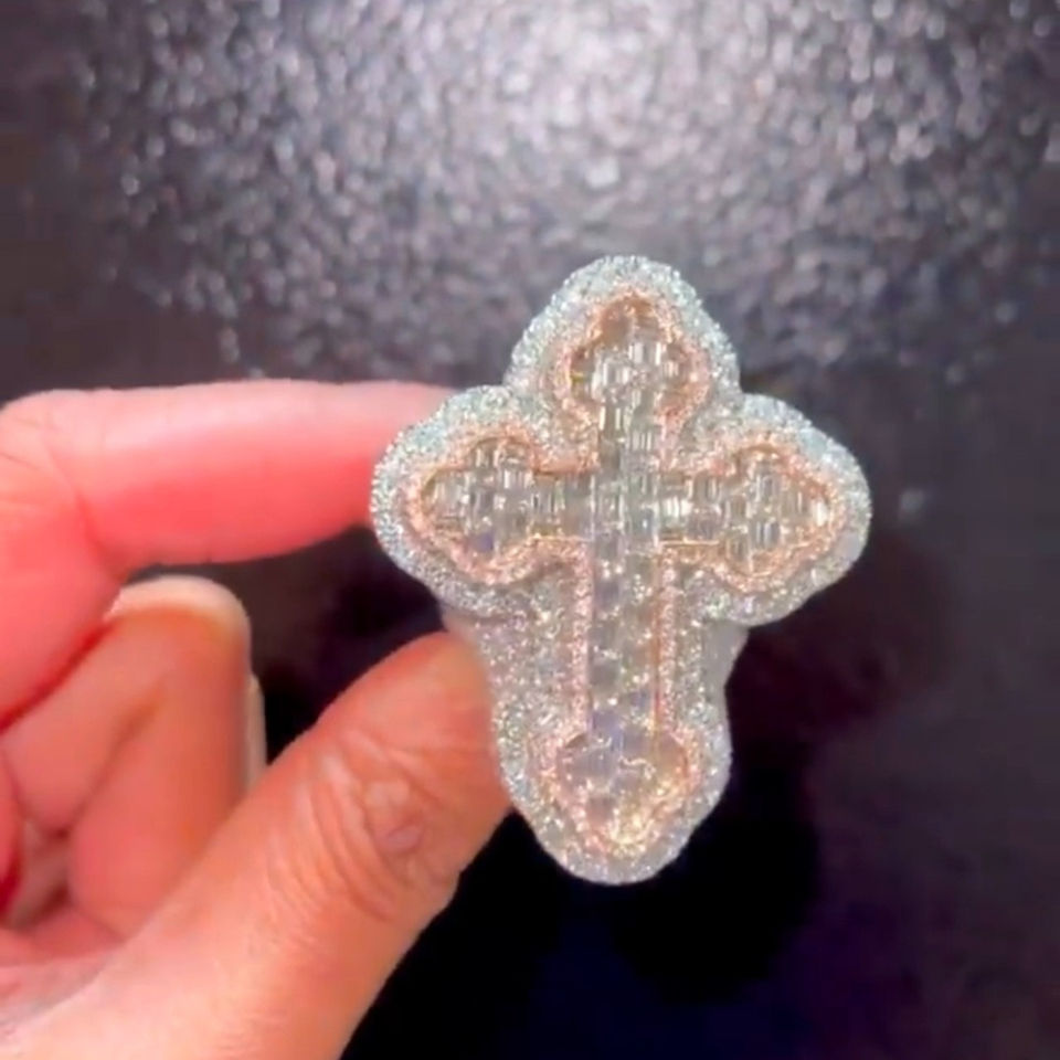 แหวนผู้ชายหรูหราสำหรับงานแต่งงาน ประดับเพชรโมอิสซาไนต์ทรงกลมเจียระไนแบบบริลเลียนท์ ชุบทองคำสีชมพู พร้อมใบรับรอง IGI รูปทรงกากบาท สไตล์ฮิปฮอป ประดับเพชรซิคอน