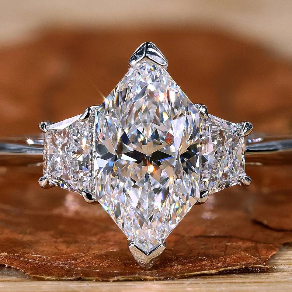 แหวนหมั้นทองคำแท้ 10K สีเหลืองทรงบริลเลียนต์คัต ประดับเพชรโมอิสซาไนต์ทรงเรขาคณิต รับรองโดย IGI แบบศาสนา แหวนดีไซน์หรู