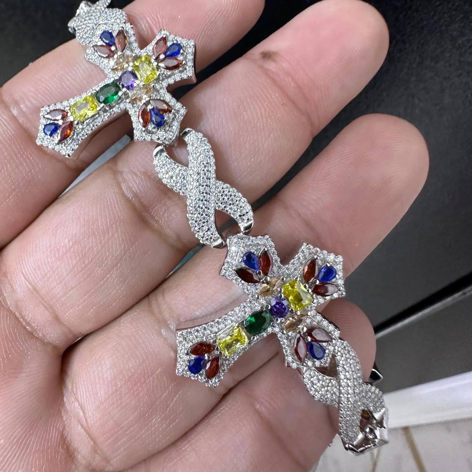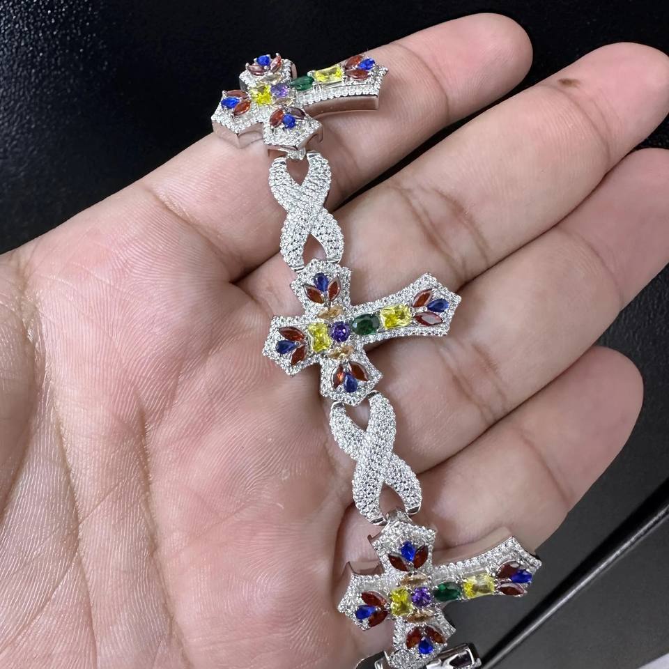 RB อัญมณีที่กำหนดเอง925เงินสเตอร์ลิงฮิปฮอปสไตล์ VVS Moissanite กำไลข้อมือพลอย cried คิวบาโซ่เชื่อมโยงเครื่องประดับเสน่ห์ที่ดี