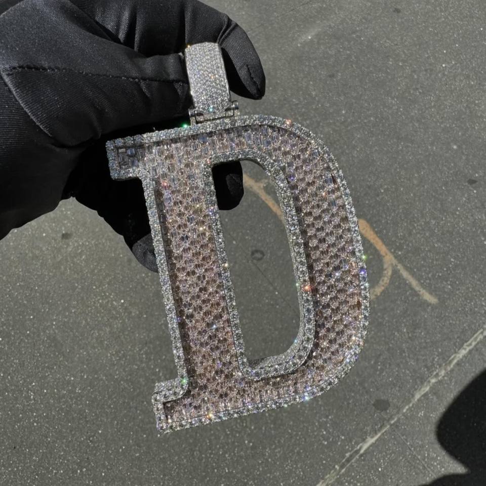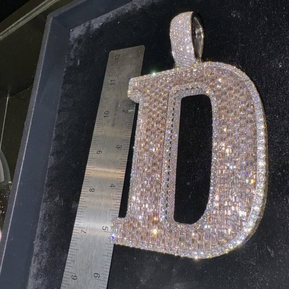 RB อัญมณีสร้อยคอเพชรสไตล์ฮิปฮอปวินโดวส์แบบกำหนดเอง925เงินสเตอริงโรสโกลด์3D ตัวอักษร D จี้เพชร missanite