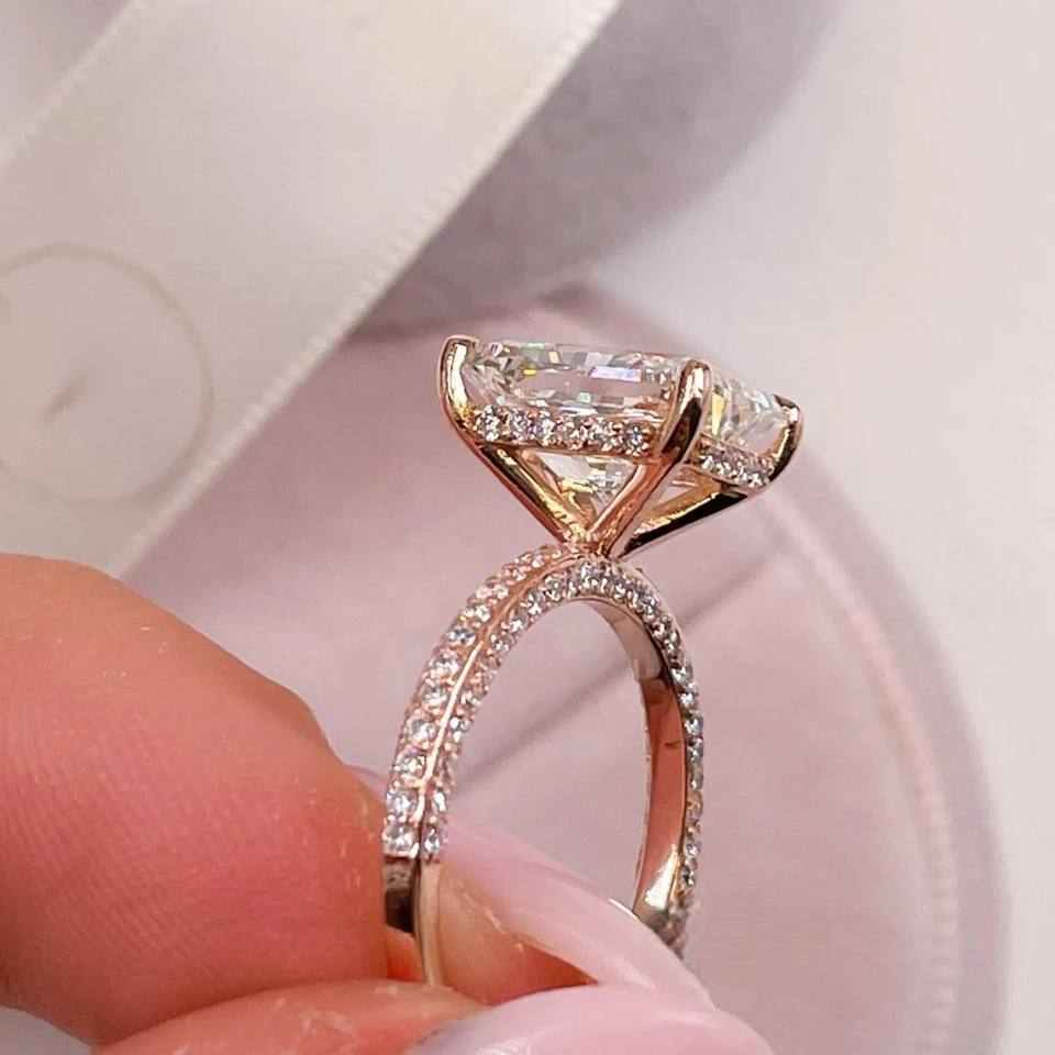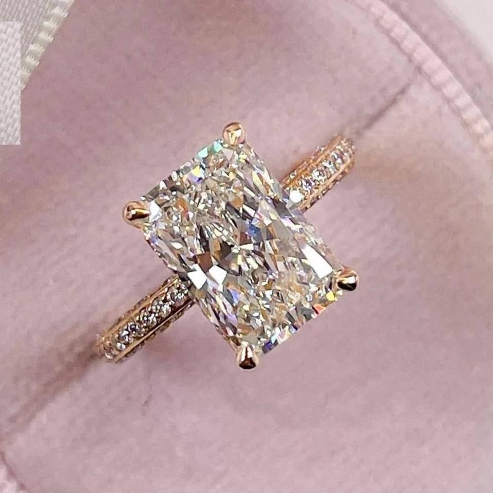 RB GEMS IGI ได้รับการรับรอง CVD HPHT สำหรับการปลูกในห้องปฏิบัติการเพชร14K แหวนแต่งงานทองคำนิรันดร์แหวนเพชรด้านข้างตัดเพชร