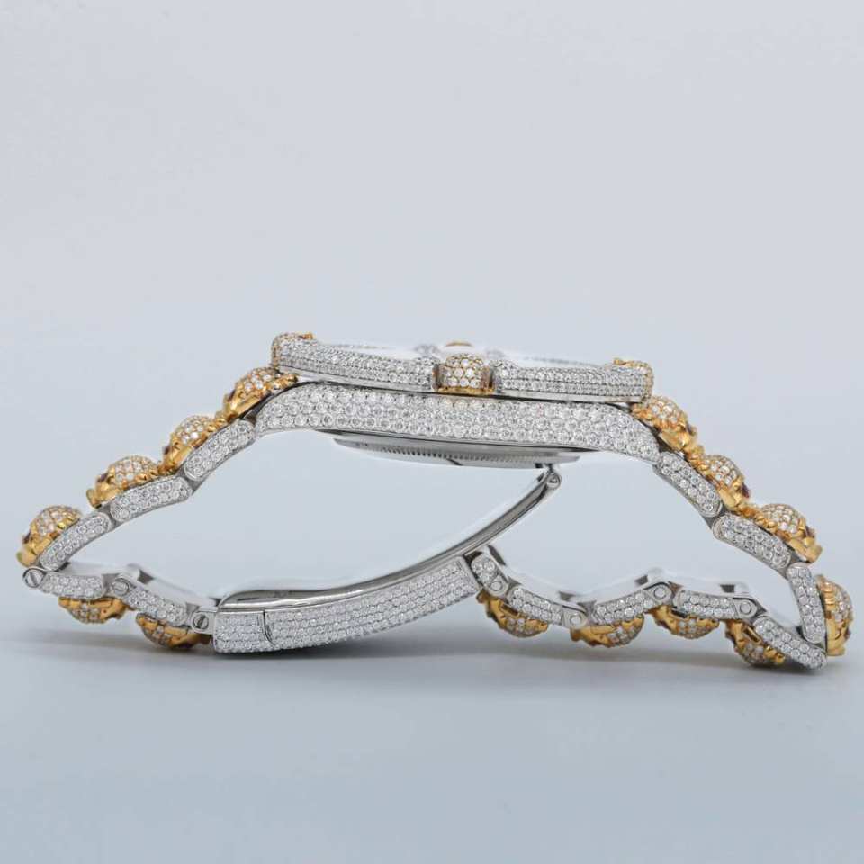 RB GEMS นาฬิกากลไกใช้ได้ทั้งชายและหญิงสุดหรูเพชรโมอิสสำหรับผู้ชายเคสทรงสี่เหลี่ยมที่เป็นเอกลักษณ์สายสแตนเลสสไตล์ฮิปฮอป